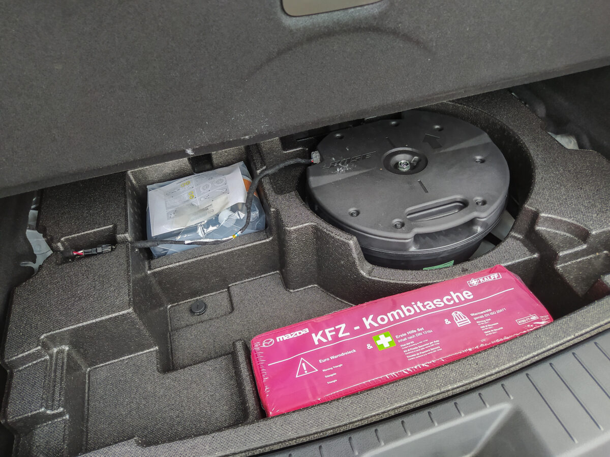 Érdekesség a meglepően élethű kamukipufogó, ami mellé Magyarországon nem csak e-Skyactiv PHEV felirat, hanem még zöld rendszám is jár majd