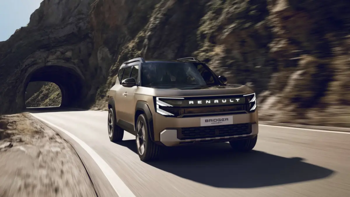 Rengeteg ma az újdonság a Renault háza táján: a Dacia Striker mellett lehullott a lepel az apró, mégis robusztus Renault Bridger koncepcióról is, amely egy Suzuki Jimny rivális lesz a fejlődő piacokon, benzin-, hibrid- és elektromos hajtásláncokkal. A 4 méternél rövidebb Bridger szögletes, terepjárós kialakítású, a hátsó ajtóra szerelt pótkerékkel és 20 centis hasmagassággal. Kis mérete ellenére a Bridger belül tágas: 400 literes csomagtartót és 20 centis hátsó lábteret ígér a Renault, ami a 4,1 méter hosszú Renault 4 villanyautó 16,4 centijéhez képest komoly előrelépés.