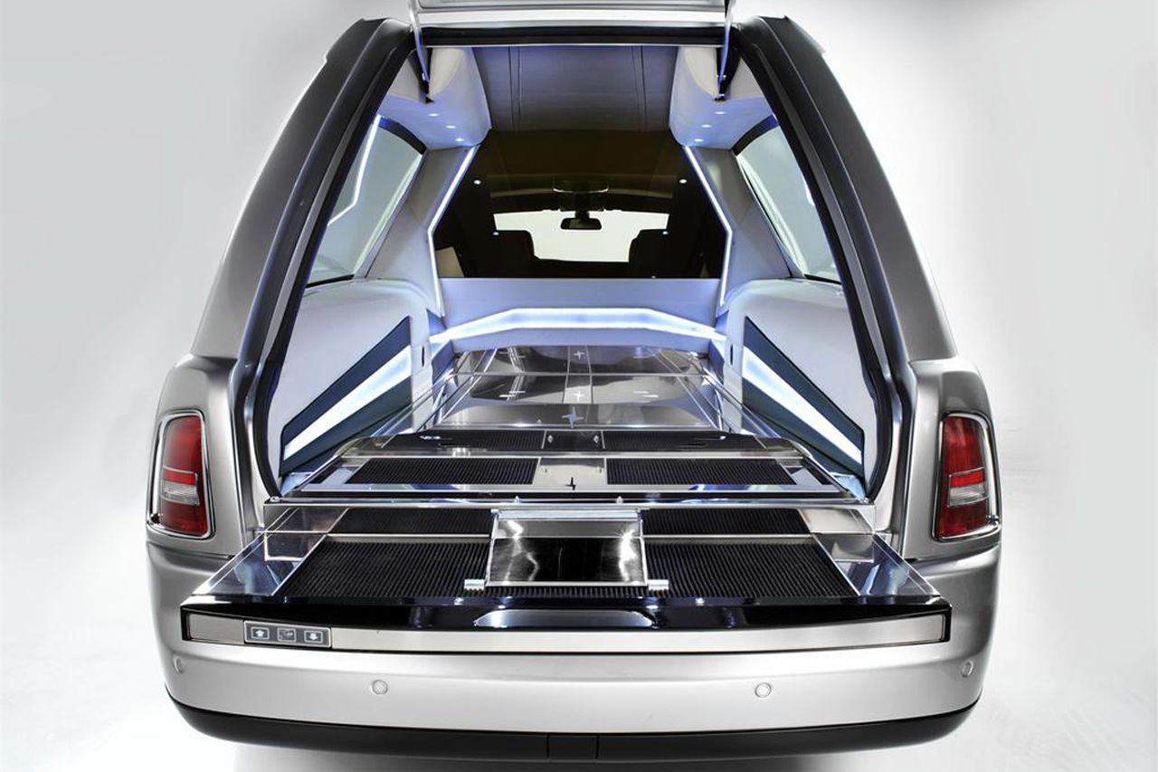 Állítólag 600 alkatrészt kellett módosítani, s 20 méter új hegesztési varratot kellett "behúzni", hogy megszülessen a hosszított Phantomnál mintegy 1,2 méterrel nyújtott, 7 méteres, 4,67 méter tengelytávú, 1,88 széles és ugyanannyi magas pompakocsi. Nem kell félniük a méretileg is nagynak számító halottaknak - és hozzátartózóiknak, a LED-fényekkel világított koporsótér 2,34 méter hosszú, 92 centiméter magas és 90 cm széles. Nem mintha egy ilyen autónál számítana, de a ravatalozó és a sírhely közötti út minden bizonnyal a lehető leggyorsabban megtehető, ugyanis a 6 fokozatú automatán keresztül hajtó 6,75 literes V12-es motor 460 lóerővel vihet a sírba.