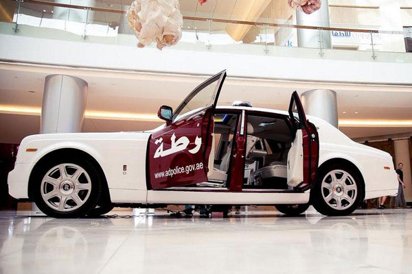 Abu Dzabiban a helyi rendőrség nemrégiben vette át legújabb szolgálati autóját, egy Rolls-Royce Phantomot. A flottában nem ez az első luxusautó.