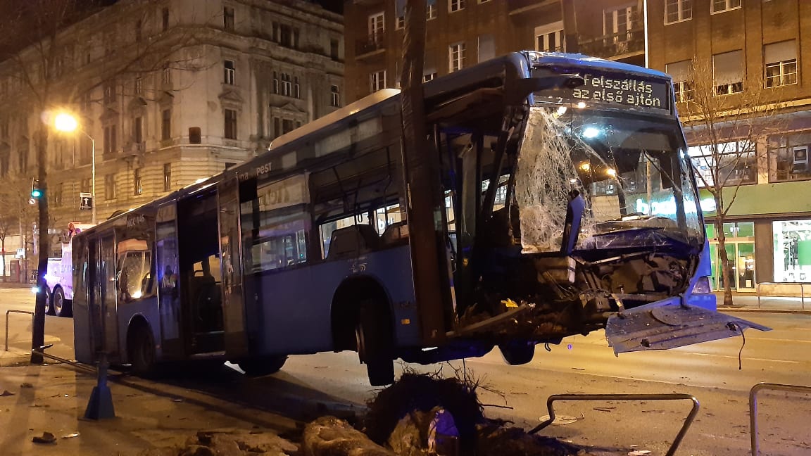Rosszul lett a sofőr, fát döntött egy busz Budapesten