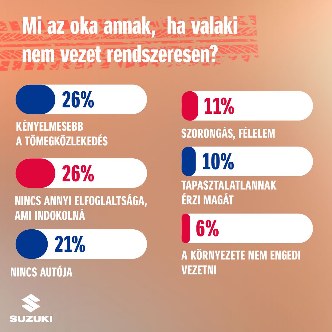 A Magyar Suzuki „Együtt az utakon” közlekedésbiztonsági kampányában minden évben más közlekedési problémára fókuszálnak - ebben az évben a rutintalan, illetve kezdő sofőrökre koncentrálnak. Az a tapasztalat, hogy a társadalomnak sokkal megértőbbnek kellene lennie velük szemben. A kampány indulásakor azonban fontos megérteni, milyen attitűd jellemzi a gyakorlott autós társadalmat, ha például T-betűvel jelzett autóval találkozik, és miért kapcsolódik sok esetben a vezetéshez negatív érzelem a rutintalanok részéről? [BANNER type="1"] A kutatásból kiderült, hogy a ritkábban vezetők körében magasabb a nők és a budapestiek aránya, illetve azoké, akik még csak néhány éve vezetnek. A kevésbé gyakori vezetés mögött többnyire a kényelmesebbnek tartott tömegközlekedés (26%) vagy a nem túl gyakori elfoglaltság (26%) áll. Minden ötödik megkérdezettnek nincs autója, minden tizedik jogosítvánnyal rendelkező pedig szorong a vezetéstől. A kutatásban résztvevők 10 százaléka azért nem vezet gyakrabban, mert tapasztalatlannak tartja magát, de olyanok is akadnak (6 százalékuk), akiket a környezetük nem enged a volán mögé. A kérdés az, vajon miért párosul szorongás vagy félelem az autóvezetéshez? A tapasztalatlanság (68 százalék), a jogosítvány megszerzése során szerzett rossz élmények (21 százalék), átélt baleset (15 százalék), nem megfelelő egészségügyi állapot (14 százalék) is az okok között szerepel, akár csak az, hogy szülőként a gyerekekre is figyelni kell a vezetés során (12 százalék). De az is az indokok között szerepelt, hogy valaki vidéken tanult vezetni, azonban nagyvárosban kell a közutakon helytállnia (5 százalék). A rutintalanok majdnem felének a kisebb közúti forgalom (45 százalék) segítene, másik felének egy szakoktató (36 százalék) vagy pszichológus (28 százalék) segítsége lenne a leghasznosabb. Felmerült az is, hogy az érintettnek kellene jobb fizikai állapotba kerülni (14 százalék), de segítség lenne a támogató környezet is (11 százalék). Volt, aki nem tudta pontosan megfogalmazni (12 százalék) milyen negatív érzések gátolják az önfeledt vezetésben. [BANNER type="2"]