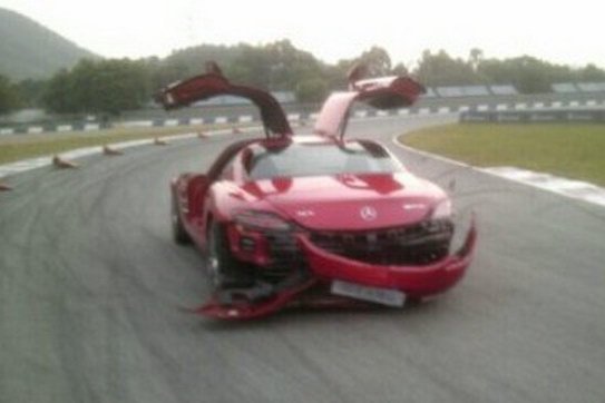 Nem így történt a kínai Zhuhai versenypályán rendezett SLS AMG Track Xperience programon, ahol két újságíró okozott komoly anyagi kárral járó balesetet.