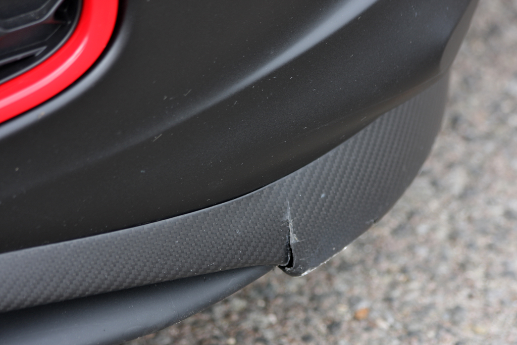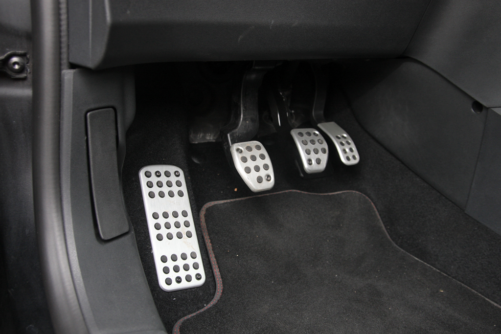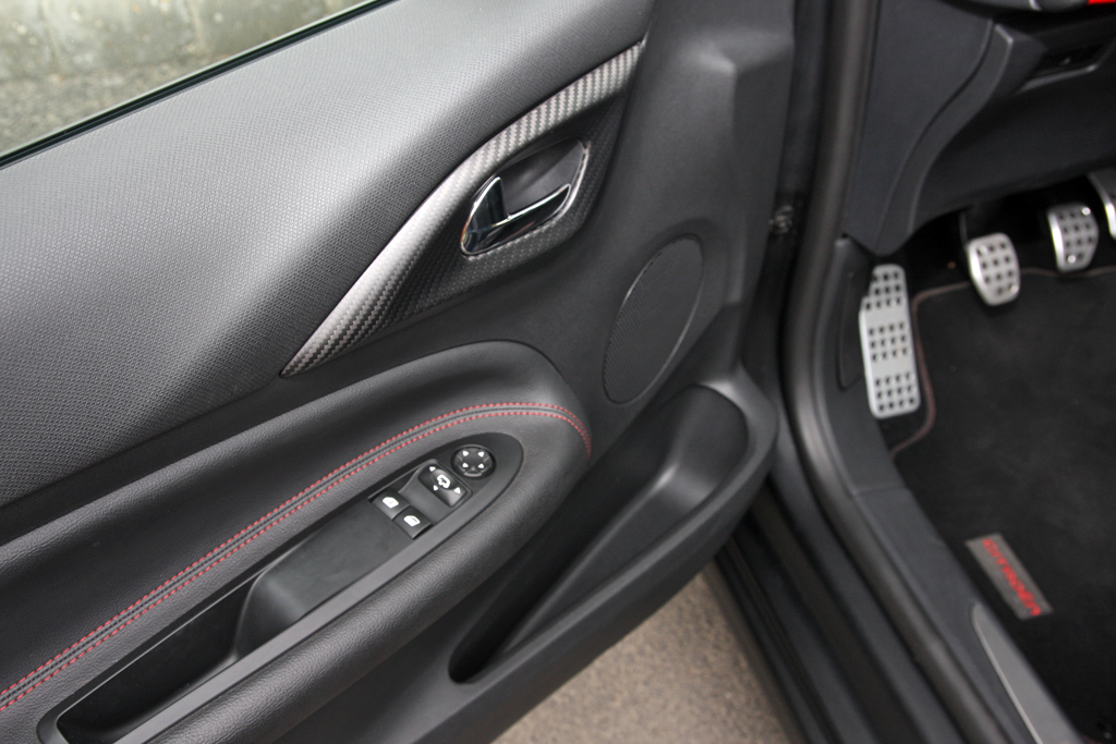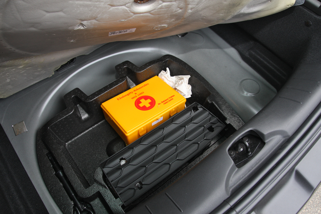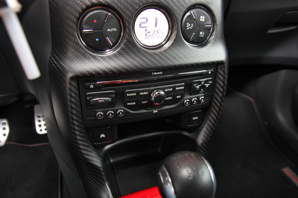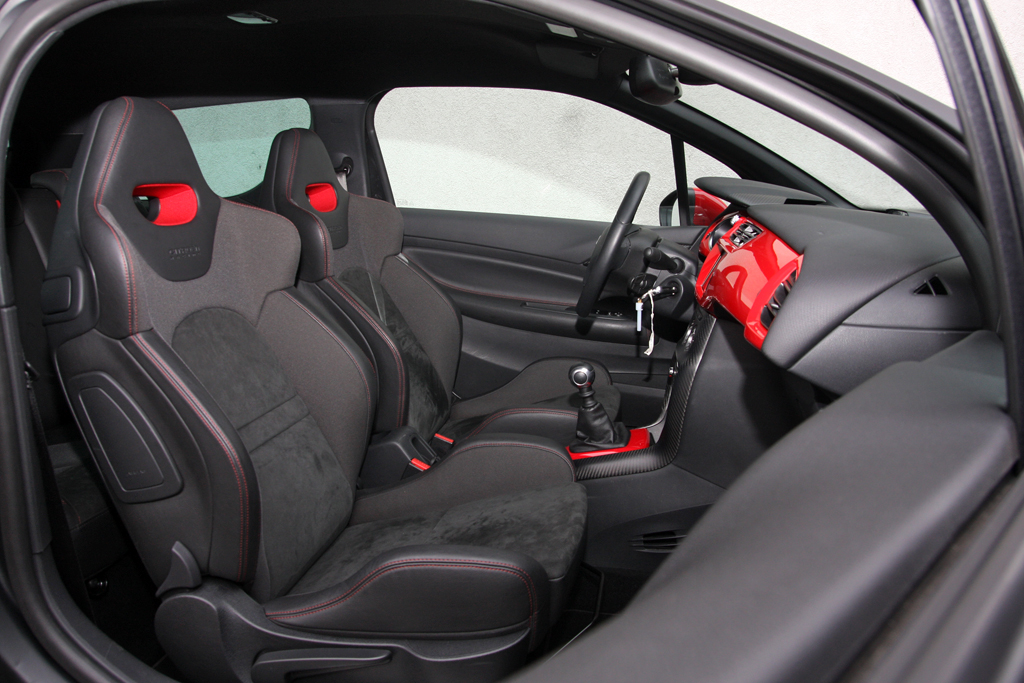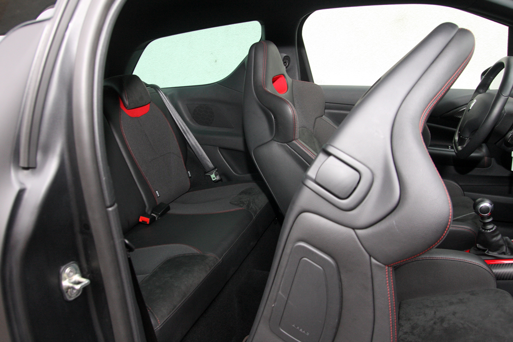 A vörös motívum bent is visszaköszön, s tán túl harsány is, de mindegy. Karbonszálas betétekből itt sincs hiány, a pedálsor, a váltógomb és a kézifékkar fémes, a kormány lapított aljú, van még piros cérnás varrás és parádés kagylóülés, a hangulat hát sportos(nak szánt). Hátra nagyon senki ne kívánkozzék, cserébe a csomagtartó használható méretű, könnyen bővíthető is - kit érdekel, menjünk már.