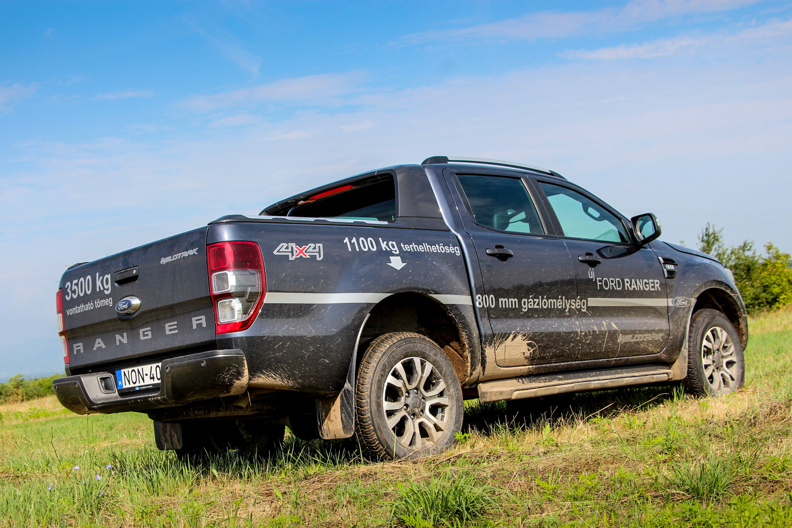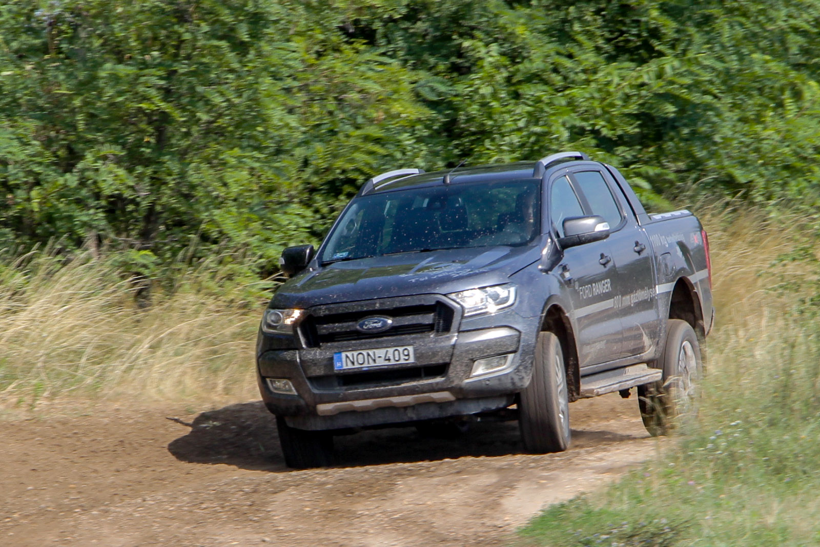 Étvágytalan izomkolosszus. A csúcsdízel a 3,2 literes, öthengeres dög 200 lóerős teljesítménnyel és 470 Nm nyomatékkal. A fogyasztása nagyon meglepő volt, a böszme testet cipelve vegyesen 8,9-et ígér a gyártó, a 9,5 még hozható is vele. A tesztátlag ennél egy literrel lett csak több, viszont ebben több dagonyázós menet és padlógázas gyorsítás is benne van, ahogy autópályázás is. Alapból a hátsó kerekeket gyűri bele a sárba, felárért kérhetünk hozzá zárható difit, ami az off-road csomag része, és több alsó burkoló lemezzel együtt szerelik a Rangerbe. Kapcsolható az összkerékhajtás, felezővel is ellátták, de nincs központi differenciálmű. Szép helyekre vitt el, jellemzően derékig érő gazban, vagy térdig érő sárban dagonyázva, és egyszer sem kerültem szorult helyzetbe. Többször vicceltek meg a leginkább aszfaltra alkalmas gumik, kétkerék-hajtásban nem volt hajlandó megmozdulni, összkerékben viszont azonnal elindult mindenhol.