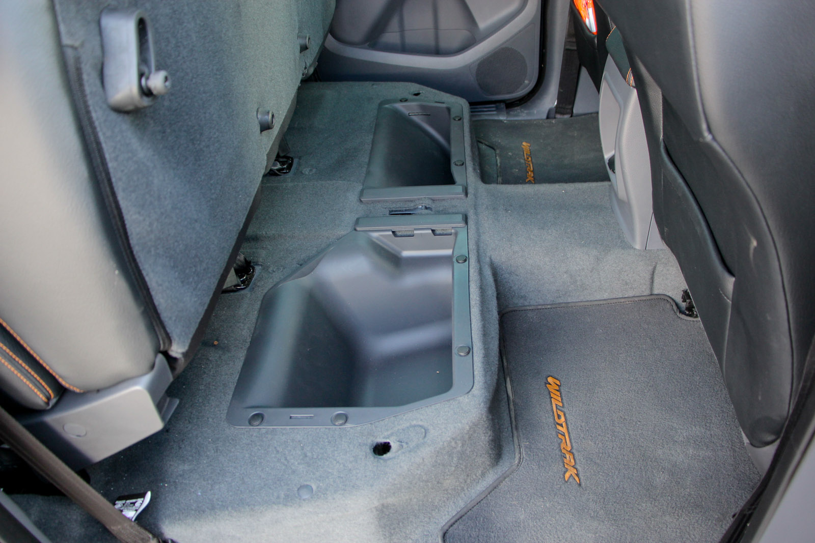 Magasan a forgalom felett vonul. A Wildtrakhez alapáron jár parkolóradar mindkét végére, meg tolatókamera is, rettentő jól jön, nem csak parkolásnál, terepen is sokat segít. Feláras viszont a plató extrázása, kérhető strapabíró műanyagburkolat, ami szárazon is jobban csúszik, mint bármelyik jégpálya, meg elhúzható alumínium roló. Tök jól hangzik, külön kulccsal zárható, de már a tesztautón is akadozva lehetett csak behúzni, valamint rendesen be is ázik, és közel fél millió forint. Inkább doboz kéne, meg kisebb pakolórekeszek a platóra, akkor talán a mindennapokban is lehetne használni, így marad a hátsó ülés a pakolásra, de utasokkal együtt már nem opció. Ha már a mindennapok, bele tudnám magam képzelni egy olyan életbe, ahol ilyennel járok, már a futóműve sem túl kényelmetlen, lehet készülni a nagyobb úthibáknál és fekvőrendőröknél, hogy pattanni fog a hátulja, alapesetben viszont nagyon kulturált közlekedésre képes, és nagyon csendes, ha csak finoman adagoljuk a gázt.
