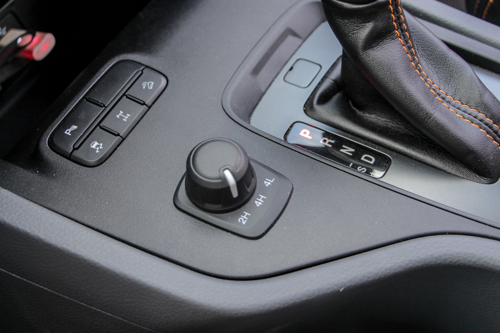 Nem aprózták el a gombokat a kormányon, eléggé a szélén vannak, többször sikerült elnyomkodnom a kijelzőket véletlenül, ez persze szokható, rendes bicskakulcs jár hozzá, és az összes fontos gombot a váltó mellé helyezték. Az üzemmódváltó tekerővel kétkerék- és négykerék-hajtás között választhatunk, valamint van felező is