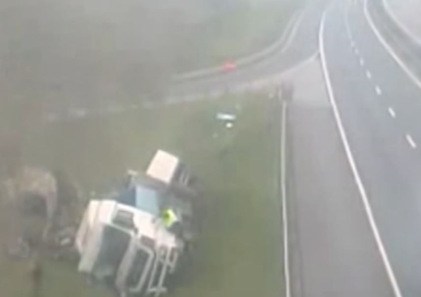 Újabb abszurd balesetet rögzített az MKIF egyik kamerája, amelyen ezúttal egy teherautó bontotta le az M3-as autópálya egyik kijáratát. Videón mutatjuk az esetet!
