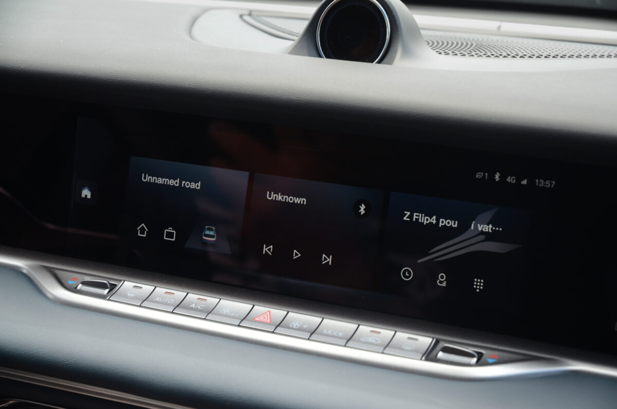 Mindenhol kiemelkedő anyagok fogadtak a beltérben, ám szinte minden rivaldafényt elhappolt a gombnyomásra állítható méretű kijelzősor a műszerfalon.