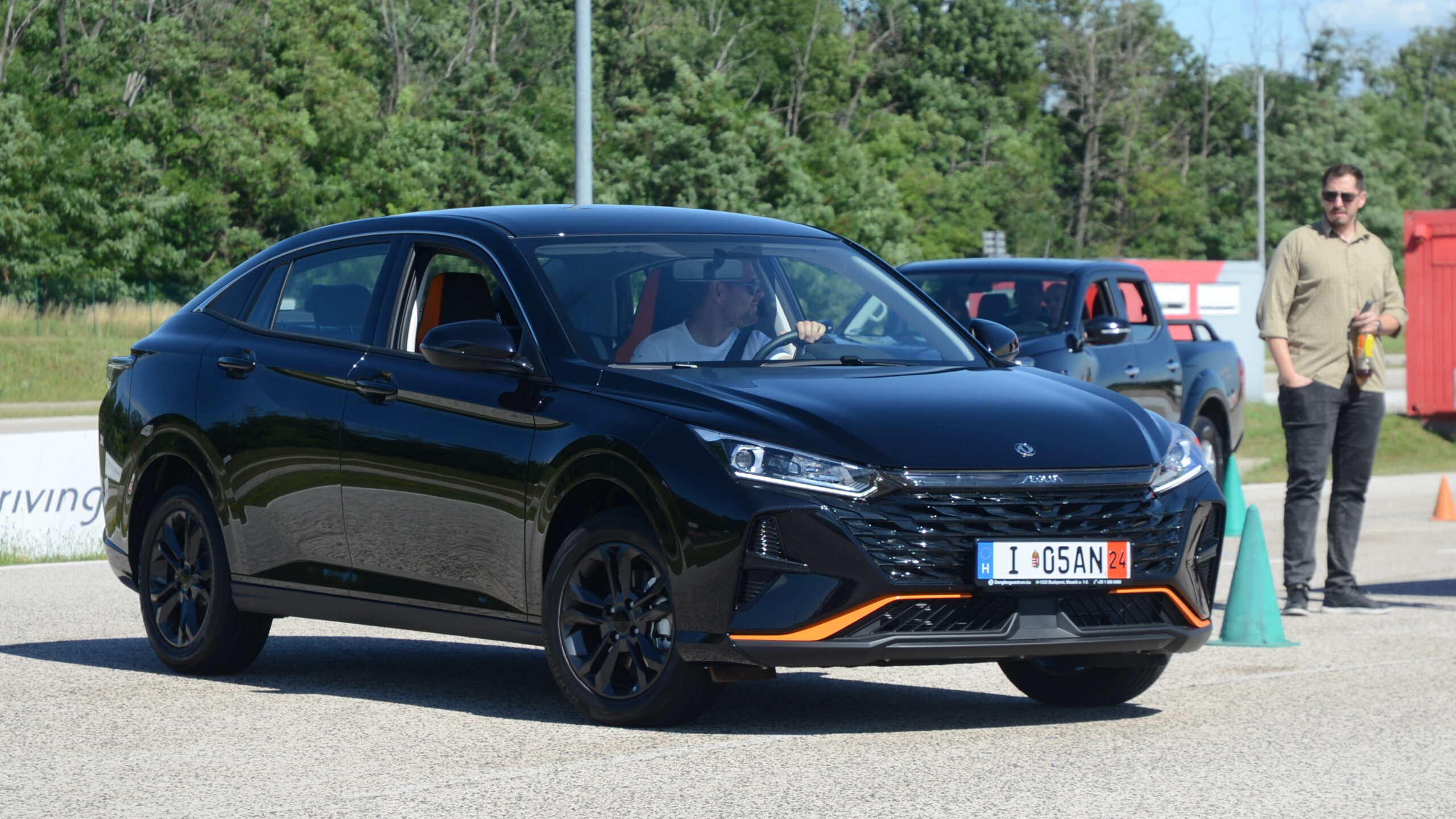 Kezdjünk a magyar piac számára - szerintem - legfontosabb modellel, ami lényegében egy alapáron is magasan extrázott, kínai Dacia Loganként is értelmezhető. A Dongfeng Shine egy 4,67 méteres szedán, kis tömeg, nagy csomagtartó, olcsó és egyszerű technika, ráadásul négyhengeres, 1,5 literes szívó vagy turbómotorral, akár kézi sebességváltóval, 7,98 millió forintos indulóárral. A Shine azonban nem magát megmutatni volt jelen a rendezvényen, hanem azért, hogy kipróbálhassuk. Így az összbenyomásról és a vezetési élményéről is be tudok számolni. A Shine ügyesen színlel magasabb színvonalat az olcsó anyagaival a beltérben, egyáltalán nem lehangoló a látkép. Mindemellett a kézi váltó kiváló, a négyhengeres motor pedig kulturált. A háromhengeres kerregés hiánya az árkategóriában egyáltalán nem jellemző: mondhatni láthatatlan, kissé tudat alatti színvonalemelkedést eredményez. A futóműve és a dinamikája is teljesen korrekt, alacsony tömege miatt nem kell bele bonyolult, drága technika ahhoz, hogy agilis, a maga kategóriájában élvezetesen vezethető autó legyen. Az átlagos sofőrök számára még szívómotorral is bőségesen elegendő teljesítménnyel, és kimondottan kellemes, közvetlen kezelhetőséggel kerülgette a bójákat.