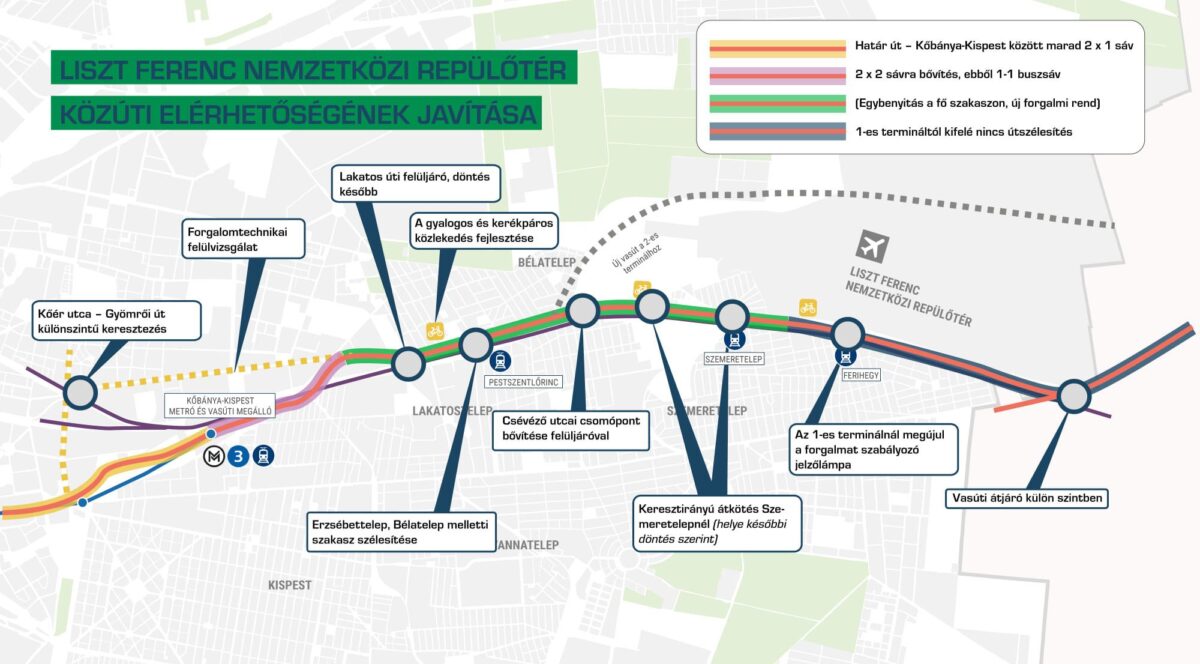 A felújítás során megszüntetik a szalagkorlátokkal tagolt szakaszokat, helyette egységes, 2×2 sávos út épül, bár nem teljes hosszában. Bizonyos szakaszon új buszsáv, gyalog- és kerékpáruta is épülnek. Ugyanakkor a beruházással nem csak a repülőtér elérhetőségén akarnak javítani. A BFK nagyszabású városfejlesztési tervei között szerepel, hogy javítsa a dél-pesti kerületek közlekedését és az érintett városrészek közötti keresztirányú közúti, autóbuszos, gyalogos és kerékpáros kapcsolatot is. A tervezés kiemelt szempontja a közösségi közlekedés előnyben részesítése, de bármilyen eszközt is válasszanak a közlekedők, a biztonság jelentős javulására számíthatnak az ígéretek szerint.