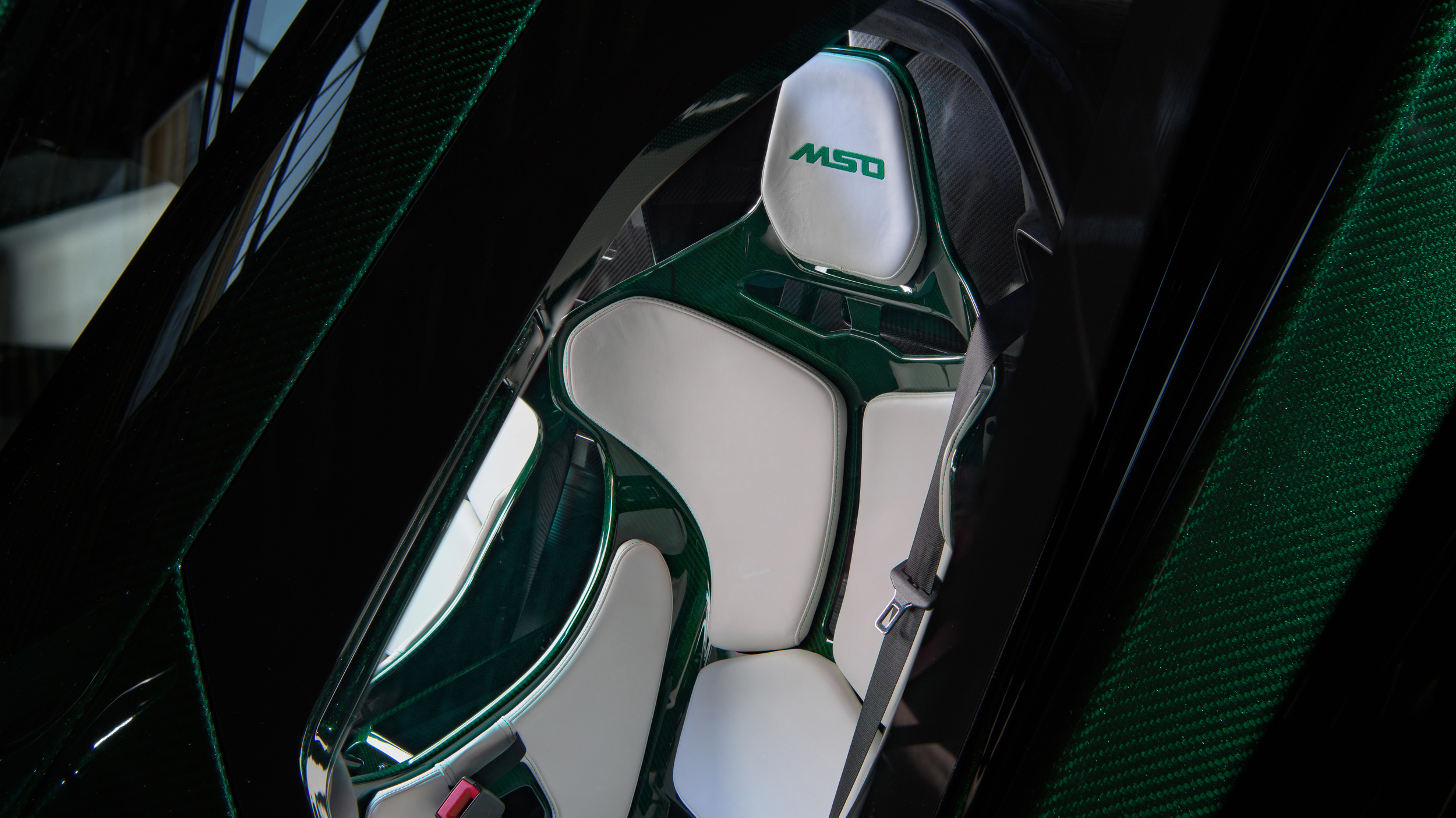 Az autó, mint néhány más McLaren modell, a gyár egy erre specializálódott részlegén került átalakításra (ez a Mclaren Special Operations, MSO), ahol a mérnökök elképesztő munkát végeztek. A smaragdzöld színben pompázó szénszálas karosszéria minden egyes eleme megérdemli a figyelmet, és van is mit figyelni, ugyanis a karosszéria egészét alkotó, 67 szénszálból készült elemének legyártása majdnem 1000 munkaórát vett igénybe. Az eredmény pedig magáért beszél: az egyébként is szokatlan, aerodinamikának teljes egészében alárendelt forma a smaragd elemekkel egészen szürreális látvány.[BANNER type="1"]