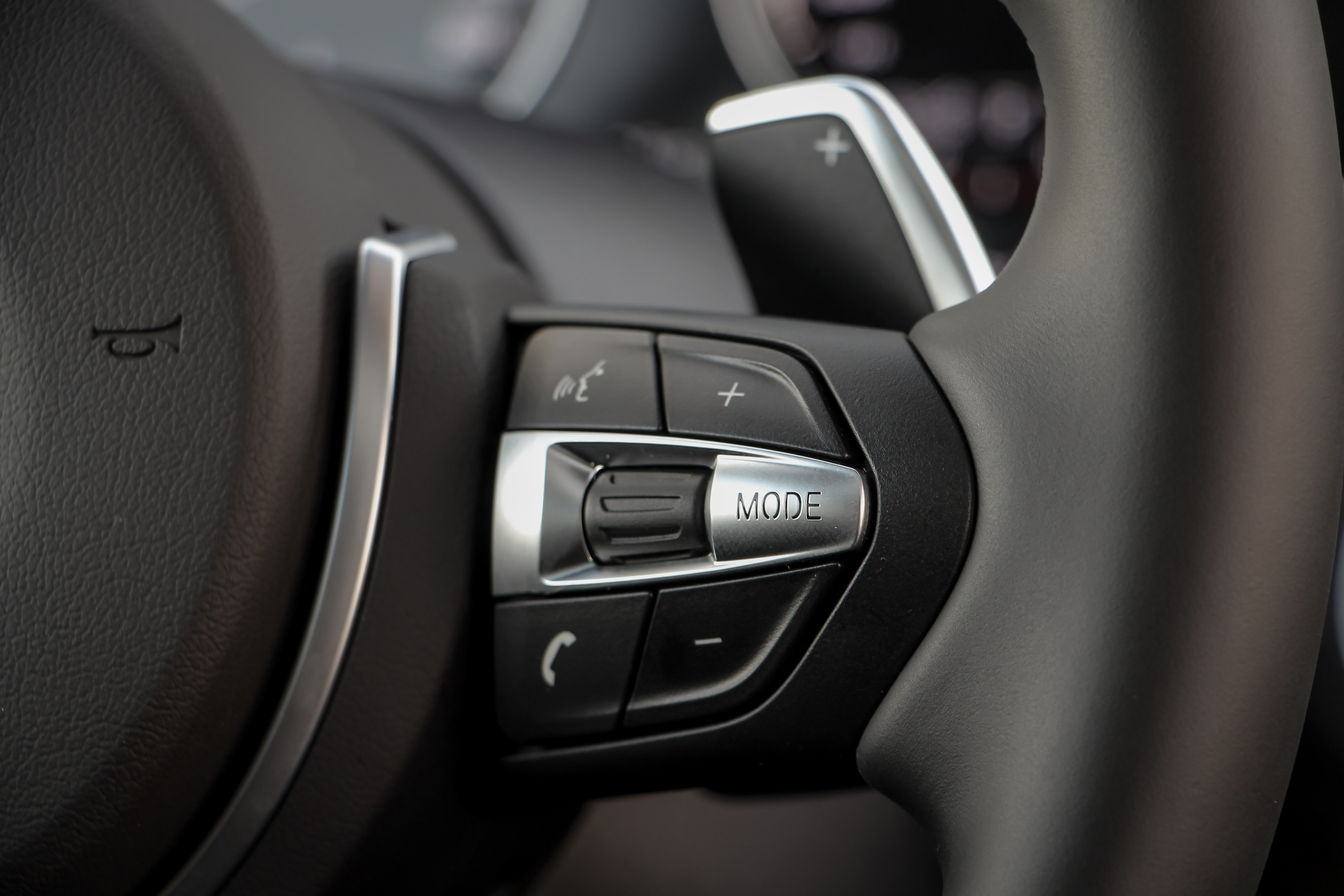 Az M csomag része a sportkormány és a sportülések, a 8 fokozatú remekül működő ZF váltó ebben az esetben a kormányról is kapcsolható