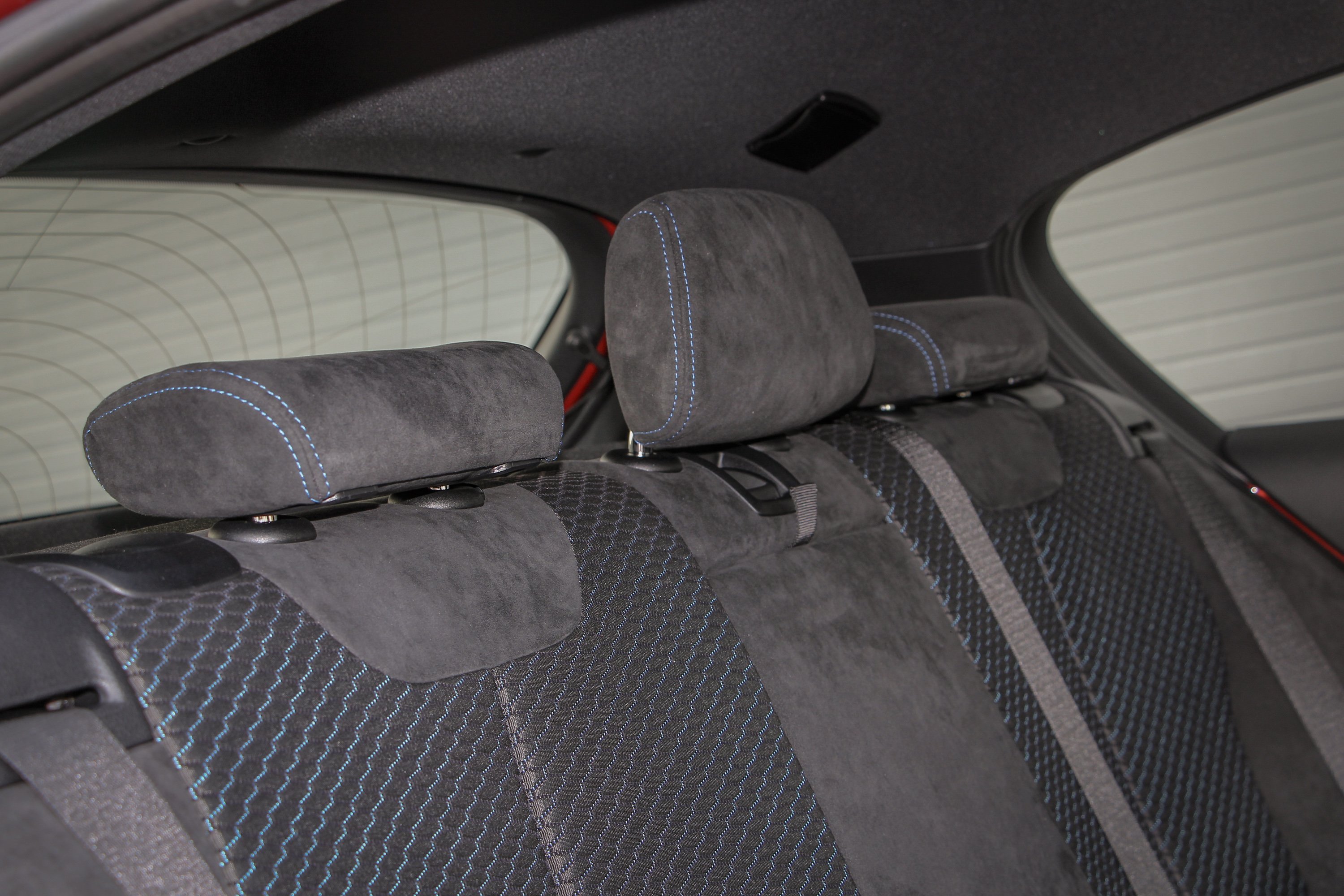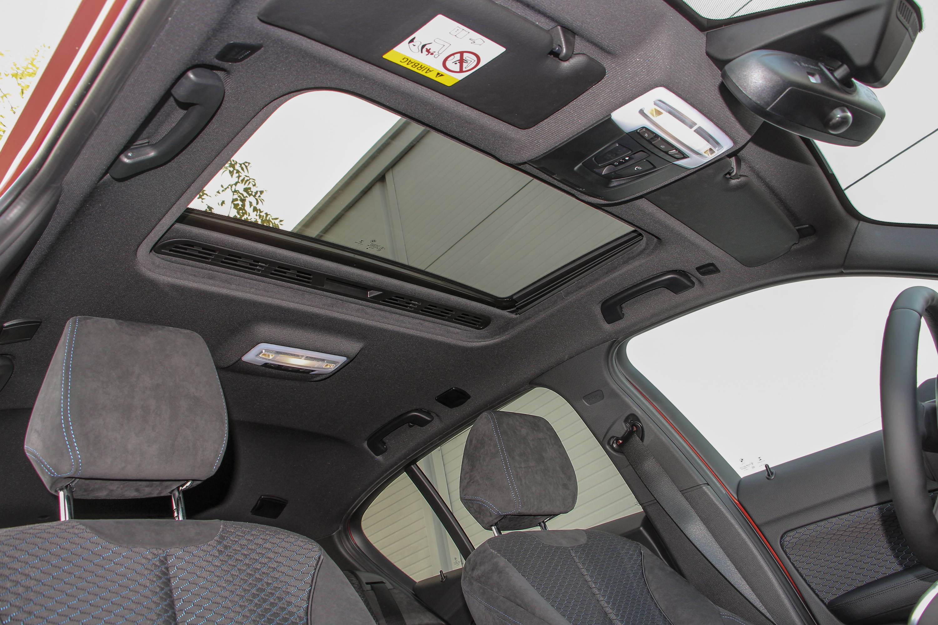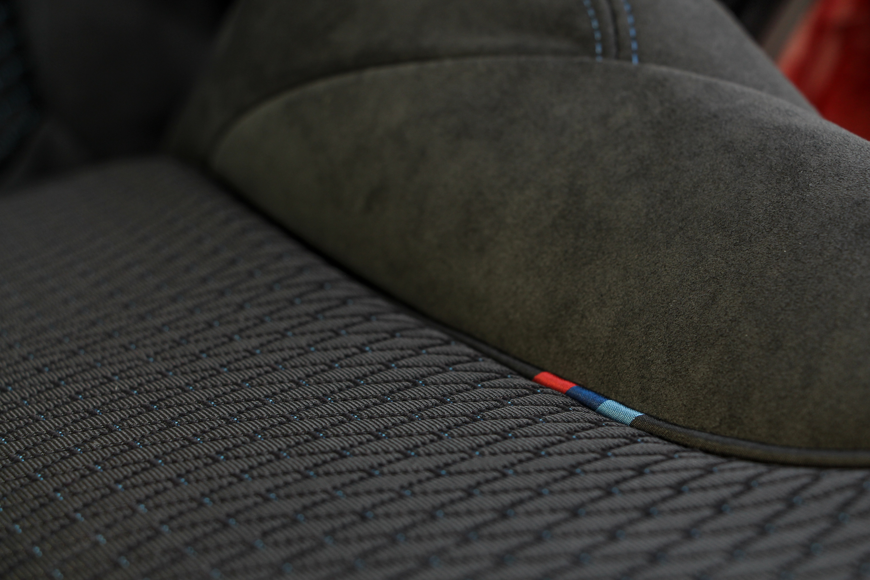 Kielégítő a hely hátul, brutál jó tartásúak az első M Sport ülések, az Alcantara kárpit pedig jó tapintású