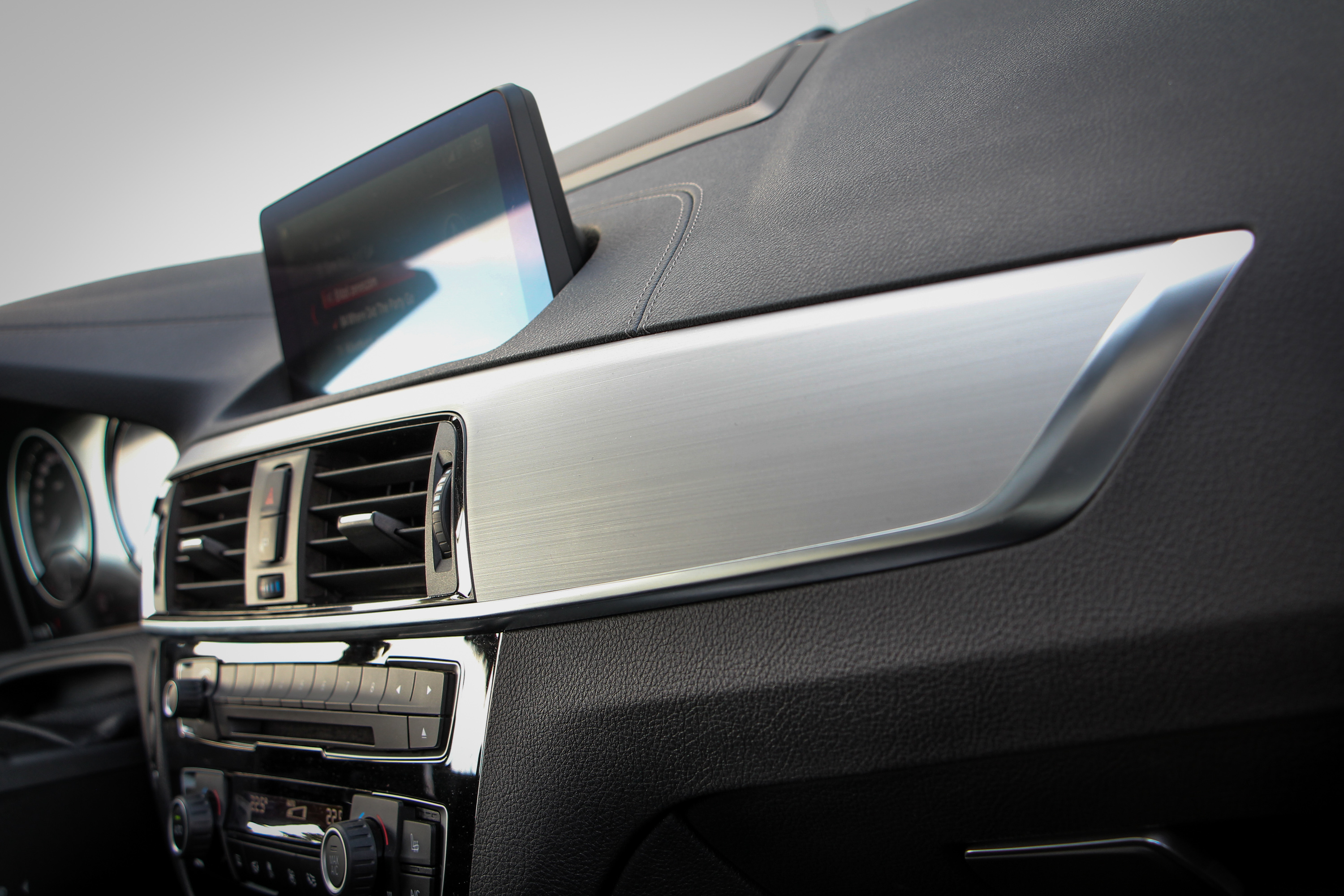 Az új, akár érintőképernyős kijelző alatti gombsor érintésérzékeny, a műszerfal szálcsiszolt alumínium betétje pedig teljesen új formai játék az 1-esben