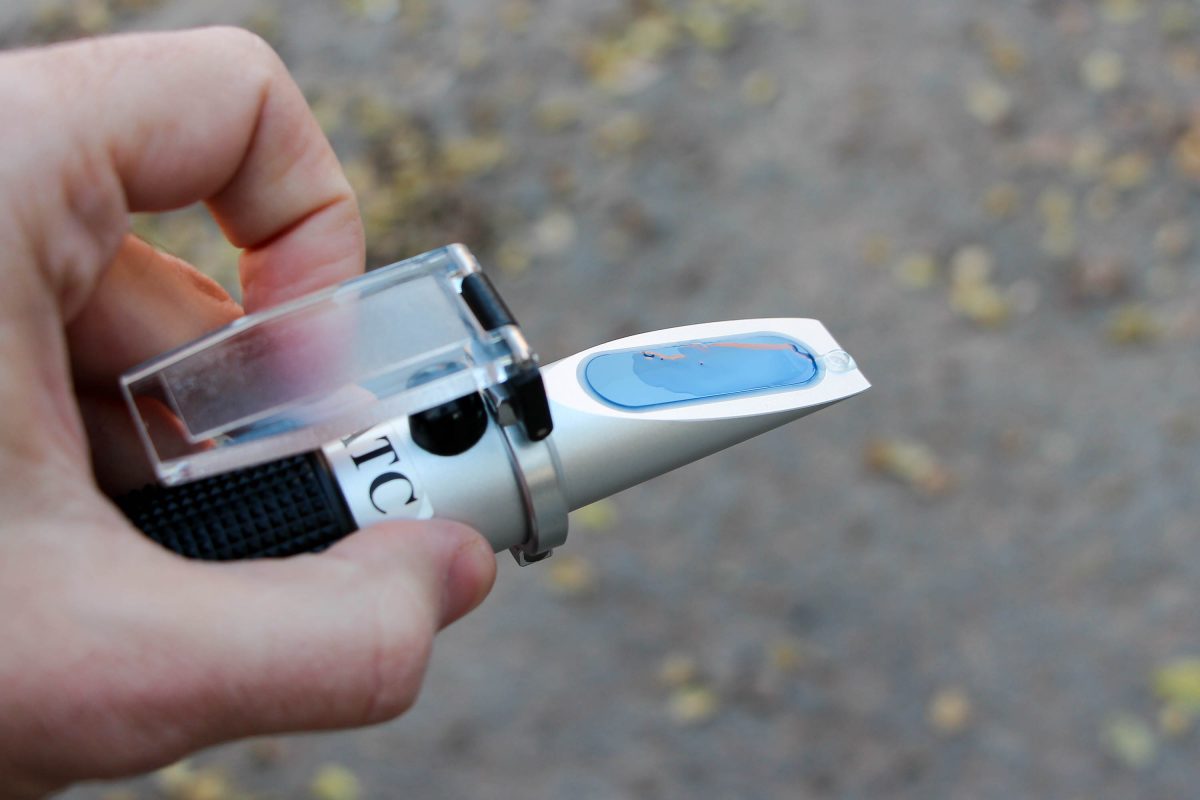 A refraktométer vizsgálóüvegére elegendő néhány csepp folyadék is, hogy lássuk annak fagyáspontját