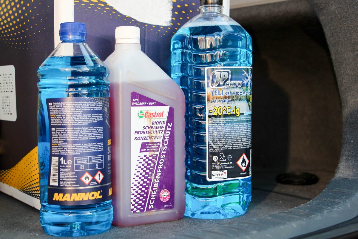 Három szélvédőmosót is megmértünk, mindegyik tudta azt, amit ígér, ám árverseny szempontjából a középső rózsaszín Castrol a legdrágább. Bár literárra olcsóbb a JP Autó szélvédőmosója, egy liter mínusz 20 Celsius fokig jó szélvédőmosót olcsóbban kapunk a hígítható SCT Mannoltól