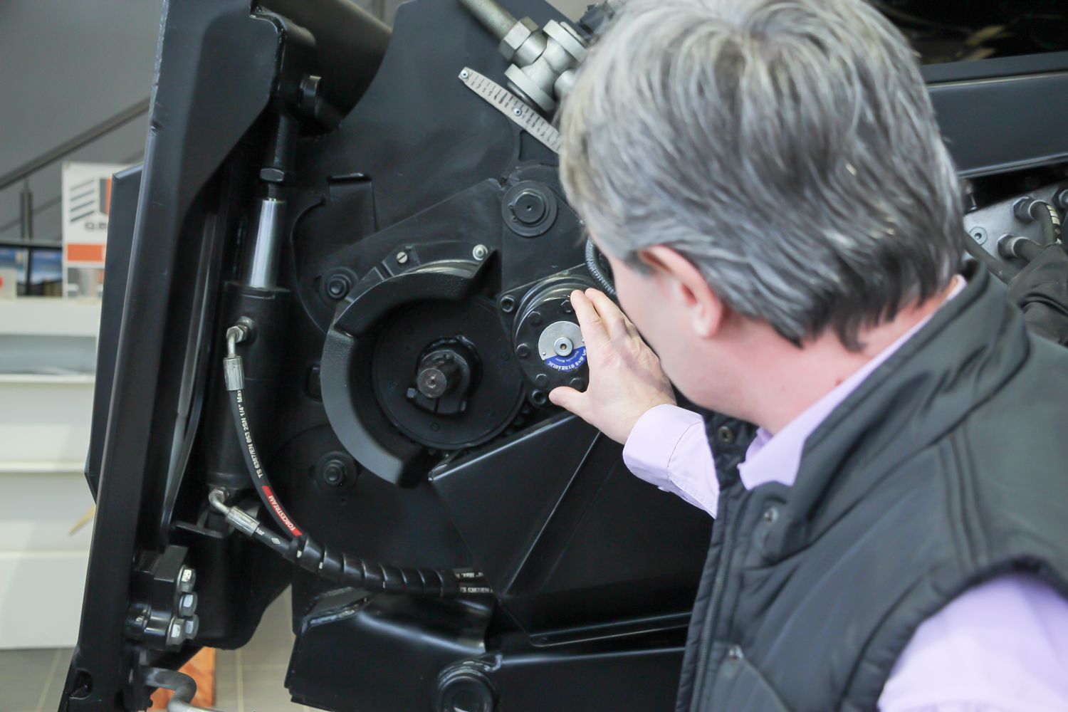 A kombájn teteje felől lehet hozzáférni a hajtómotorhoz. A Cummins kipróbált sorhatos blokkja itt 380 lóerőt teljesít. Ilyen magasan van az RSM 161 teteje