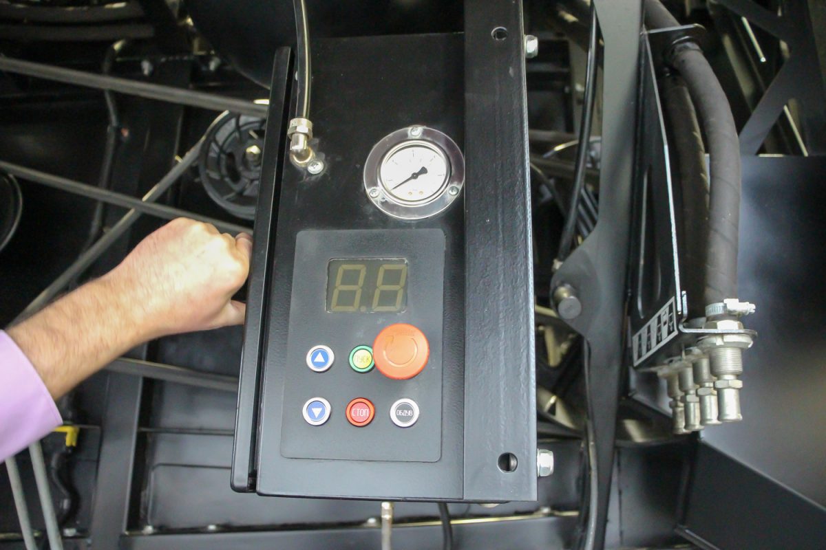 A fedélzeti információs rendszer 10 colos képernyője érintésvezérlet, a multifunkciós markolatról 16 művelet irányítható, a gép saját légrendszere persze a géptérből is