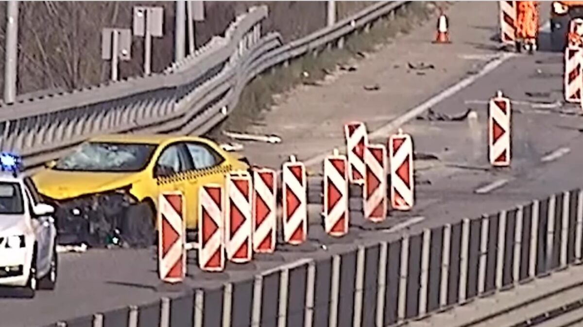 Erre nincs mentség: fékezés nélkül rohant bele egy taxis a terelőtáblákba az M31-esen (Fotó: Intagram.com/magyarkozut)