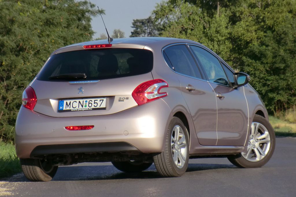 Felhúzott ablakokkal a 208 menet közben (még autópályán is) csendes, ha azonban leengedjük az oldalüvegeket, nem csupán érezhető, hogy alacsony fordulaton nyomatékszegény a 115 lóerős (a 3 lóerővel elvileg gyengébb Citroën C4-ben harmonikusabbnak mutatkozó) e-HDi, csörgéséből is érezhető, hogy kínlódik. Pedig a 208 nem nehéz, miként kisebb, úgy (átlagosan mintegy 150 kilogrammal) könnyebb is lett a 207-esnél. Még az 1,6-os csúcsdízel is csupán 1090 kilogrammos saját tömeggel startol, s menet közben érezhető is, hogy könnyű a „nyolcasok" körében eddigi legkisebb Peugeot. A tömegcsökkentés pedig nem csupán közvetlen irányíthatóságot, kedvező fogyasztást is eredményez. A gyár 3,8 l/100 km vegyes értéket ígér – ami 99 g/km szén-dioxid emisszióval párosul -, nálunk szinte folyamatos légkondicionálással, mintegy 100 kilométer autópályás, szabályos 130 km/órás hajtással, közel ennyi városi használattal és még mintegy 250 kilométer országúti autózással 4,4 l/100 km tesztfogyasztás adódott, ami igencsak kellemes élmény a benzinkúton.