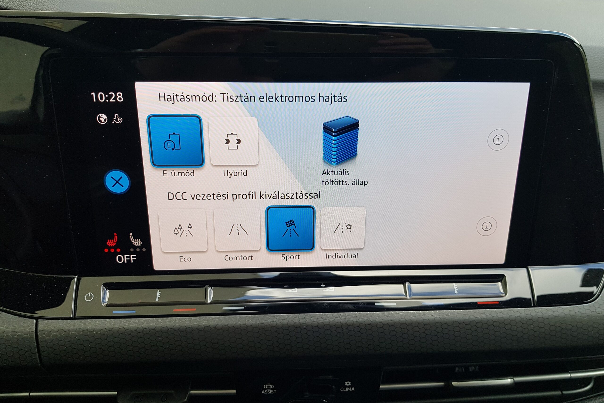 Megszokható a digitalizáció is, ám továbbra sem értem, hogy miért nem világít az érintőképernyő alján a hőfokszabályzó, és a kormánykerék haptikus gombjai sem váltják meg a világot. Jó lett volna ide delegálni az üzemmódválasztót is, de legalább nem a menüben kell matatni érte. Vagyis nem teljesen. Mert bár van külön gombja a középkonzolon, de a tisztán villanyhajtás és a hibridség közötti váltáshoz így is a képernyőhöz kell nyúlni, akármelyik módot is választottuk a sportos, a komfortos vagy az[urlap] Eco közül.