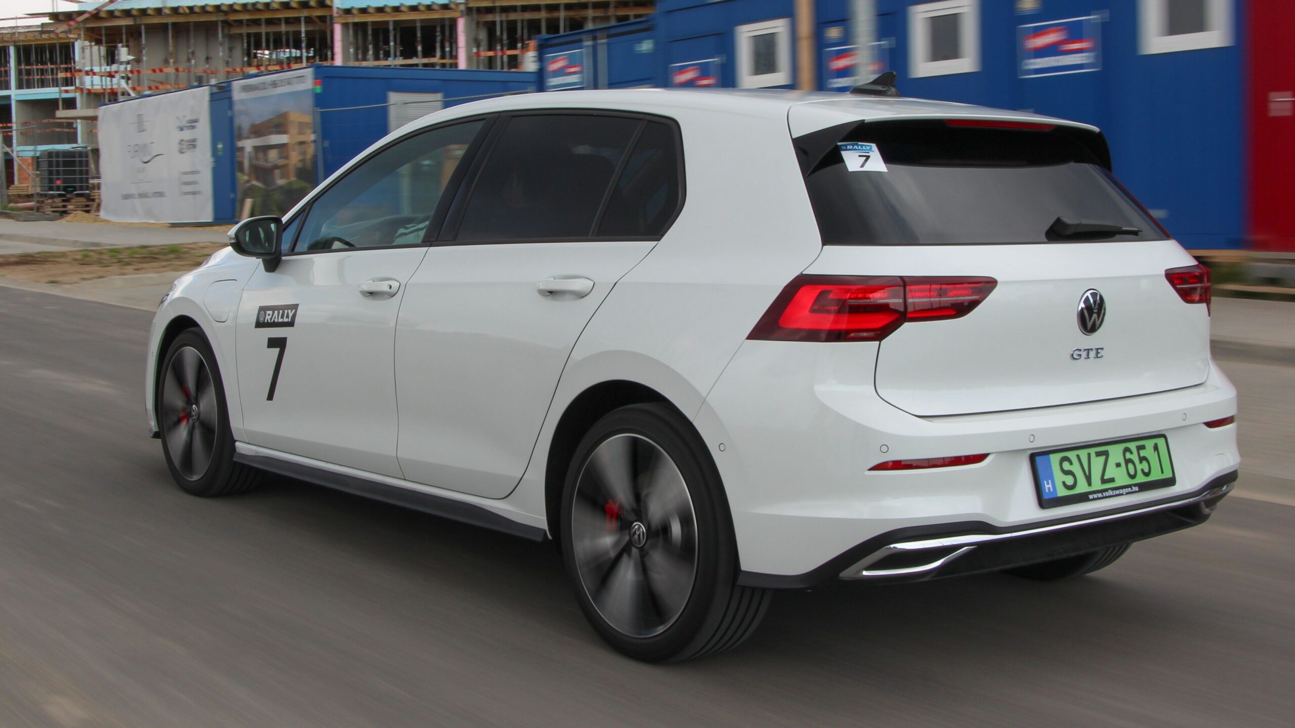 Clubsport. Nem akar nagyon kitűnni a tömegből, de azért jelzi, hogy nem érdemes packázni vele. Zöld rendszám ide, zöld rendszám oda, ezt a GTE is tudja. Pedig a fehér szín nem a legizgalmasabb, ellenben szépen „rímel” a tisztaság üzenetére, márpedig a GTE egy konnektoros hibrid, tehát megfelelő használat esetén nincs helyi károsanyag-kibocsátása. De akkor sportautós élmény se. Na, de megint előre szaladtam. Szóval a lökhárítón látható méhsejtmintás hűtőrács, a GTE felirat elöl és hátul, a 18 colos felnik, mögöttük vörös féknyergekkel, illetve a nem túl nagy, de azért hangsúlyos légterelőben végződő tető árulkodik az autó különlegességéről. Még a kamu kipufogóvégeket is megbocsátom neki, mert egészen ízlésesen oldották meg, de azért az a sok autó után forduló tekintet valószínűleg inkább a korábbi VW rendezvényen ráragasztott rajtszámnak is köszönhető.