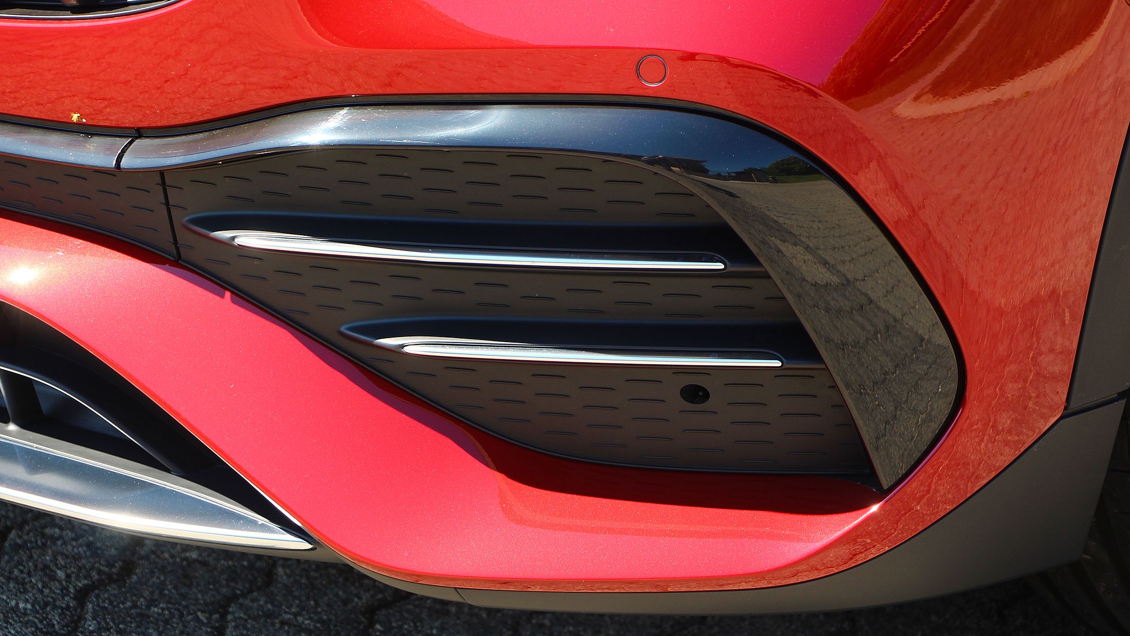 Persze nem elég erősnek lenni, annak is kell látszani, ismerik ezt a közmondást a Mercedesnél is, így egyértelművé tették a külső dizájnelemekkel, hogy az AMG család egyik tagjával állunk szemben. A hűtőrács krómosan csillogó függőleges lécei egyből elárulják, hogy a GLA egyik legerősebb változata néz velünk farkasszemet. Persze ott az AMG felirat is, de azt nehezebb kiszúrni. Továbbá az első lökhárító krómezüst (kérésre fényes fekete) betétjei is az AMG „stílus” sajátjai, ezekből jut az ajtókra is. Az alapból 19 colos könnyűfém keréktárcsákba is bevésték az AMG feliratot, ám ezekből rendelhető akár 20 vagy 21 colos méretű is. Hátul az új diffúzorbetét, a légterelőben végződő tető, illetve a két kerek kipufogóvég fokozza a sportosságot. Miközben megmaradtak az autón a fényezetlen műanyag elemek is körben a karosszérián, szóval a szabadidő-autós megjelenésről sem mondtak le a tervezők, így egészen érdekes összképet mutat az AMG GLA 35.
