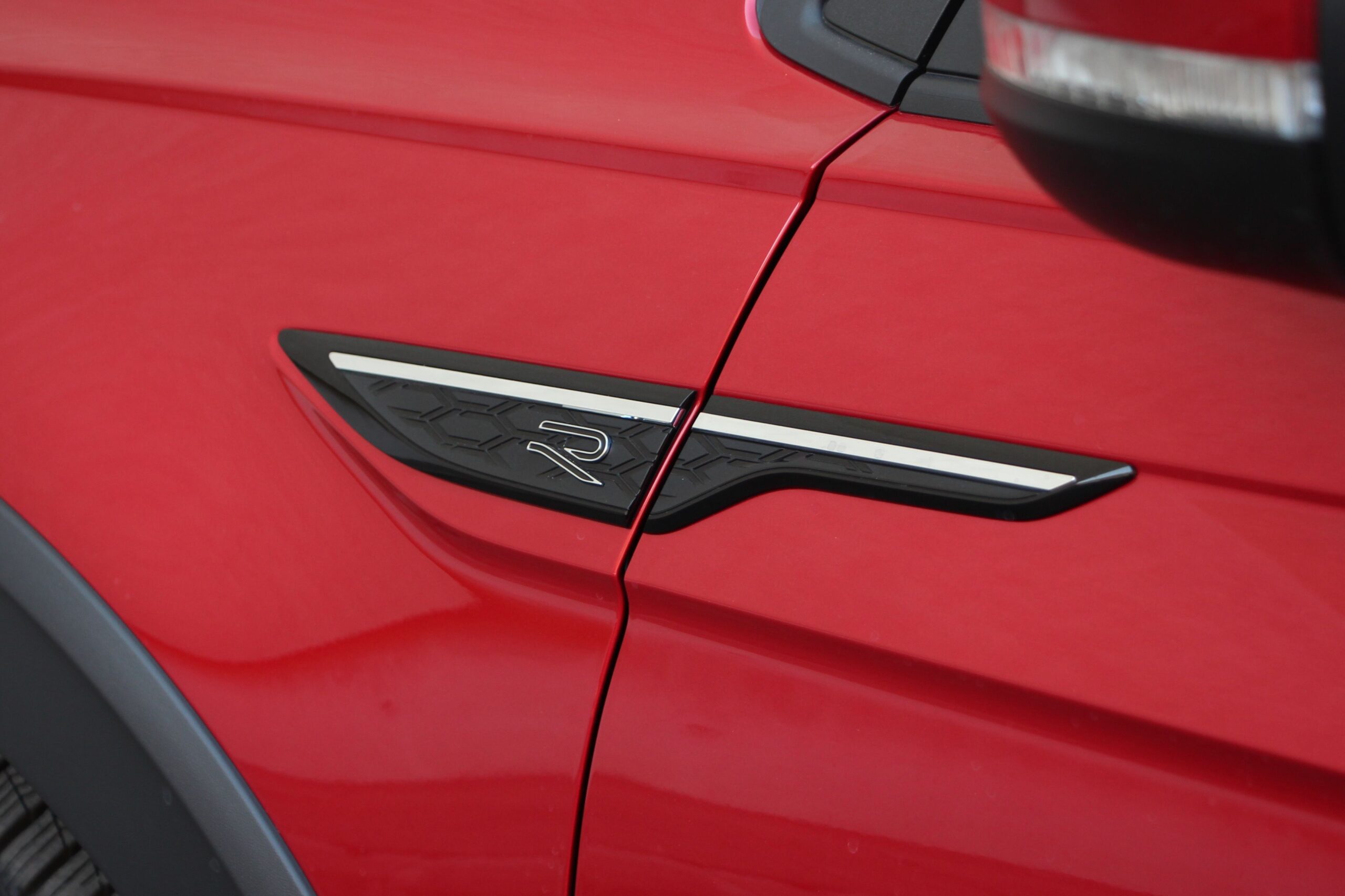 Elöl a megszokott VW SUV arcot hozza, de a már említett R-Line csomag, fényes fekete díszbetétekkel, méhsejtmintás, R-logós hűtőmaszkkal sminkeli dögösebbre az alapváltozatot.