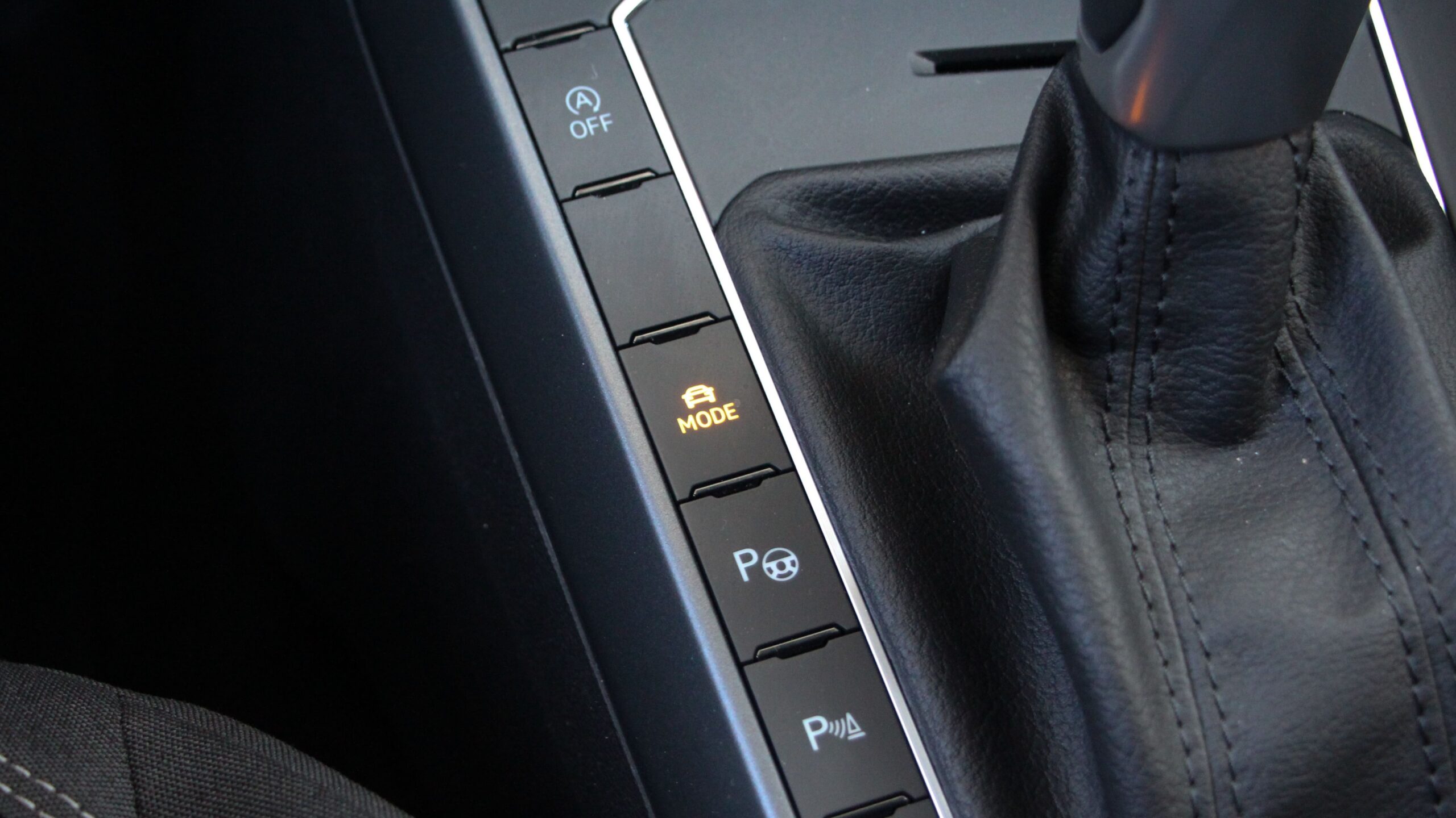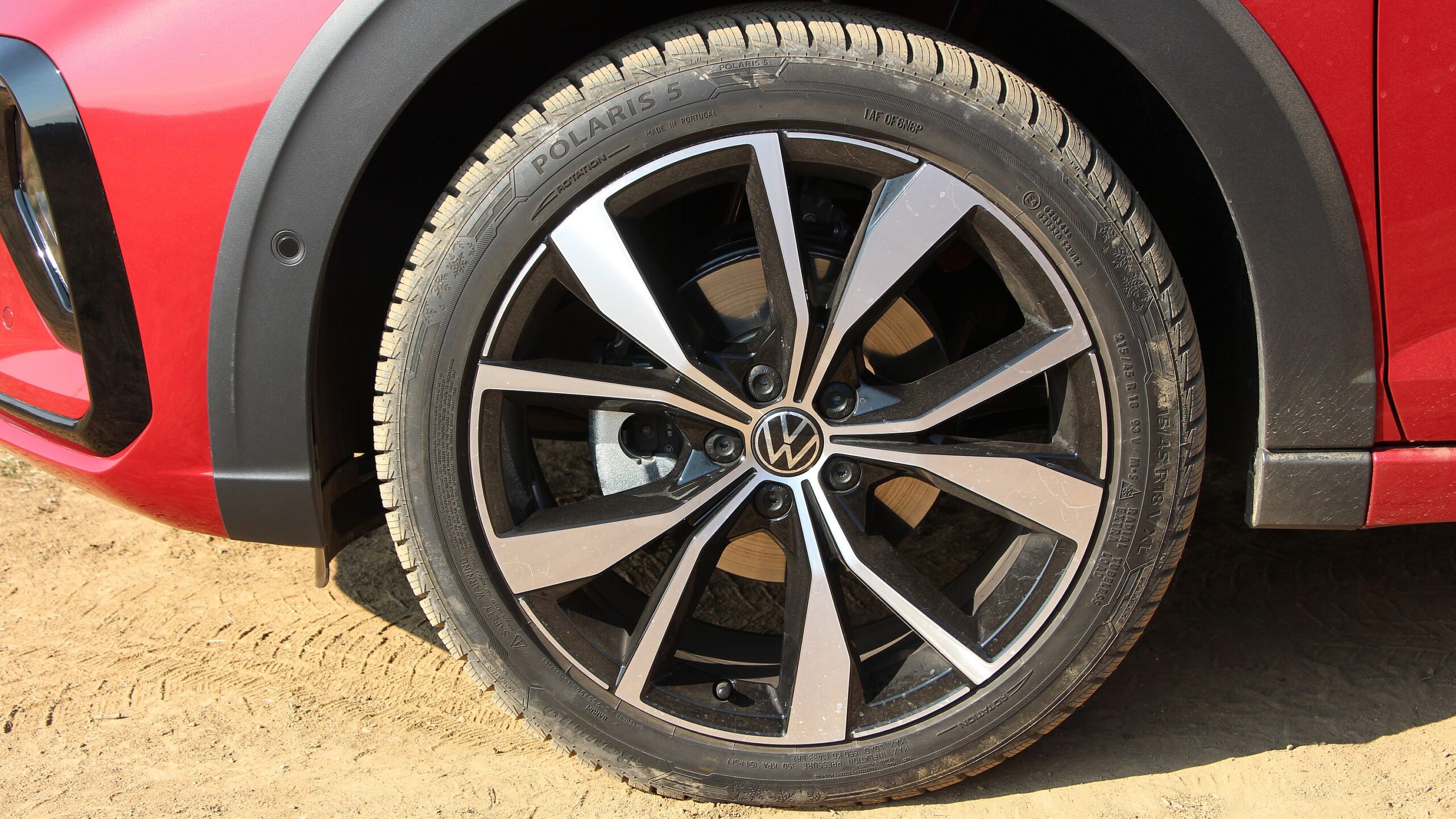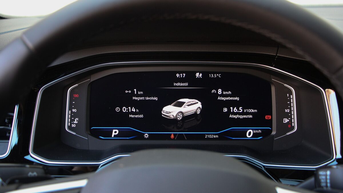 Az automatikus sebességváltó karja mellett ott van az üzemmódválasztó gombja, de ez igazából egy teljesen felesleges extra, a sport módot kiválasztva nem történik semmi jelentős változás azon kívül, hogy feleslegesen sokáig hagyja magas fordulaton pörögni a motort. Pont elég erőt szabadít fel még Eco módban is a kényelmes közlekedéshez, országúti előzéshez. Ráadásul a kormány felkeményedését sem éreztem számottevőnek a sport módban, pedig ez jól jönne a Taigónak. Futóművének hangolása ügyesen sikerült, szépen belőtték a feszes és a lágy közötti arany középútra, bár komfortján valamelyest rontanak az extraként rendelhető 18 colos könnyűfém felnik, illetve az emiatt kissé keskenyebb oldalfalú gumik. Bőségesen elegendő hozzá az alapból járó 17 colos kerék, de a kormány az, ami számomra túl steril volt. kevés visszajelzés érkezett felőle. Ettől persze még jó vezetni a Taigót, és főleg könnyű vele a városi manőverezés, de ha már R-Line, akkor egy kicsit vérpezsdítőbb kormányérzetet várna az ember.