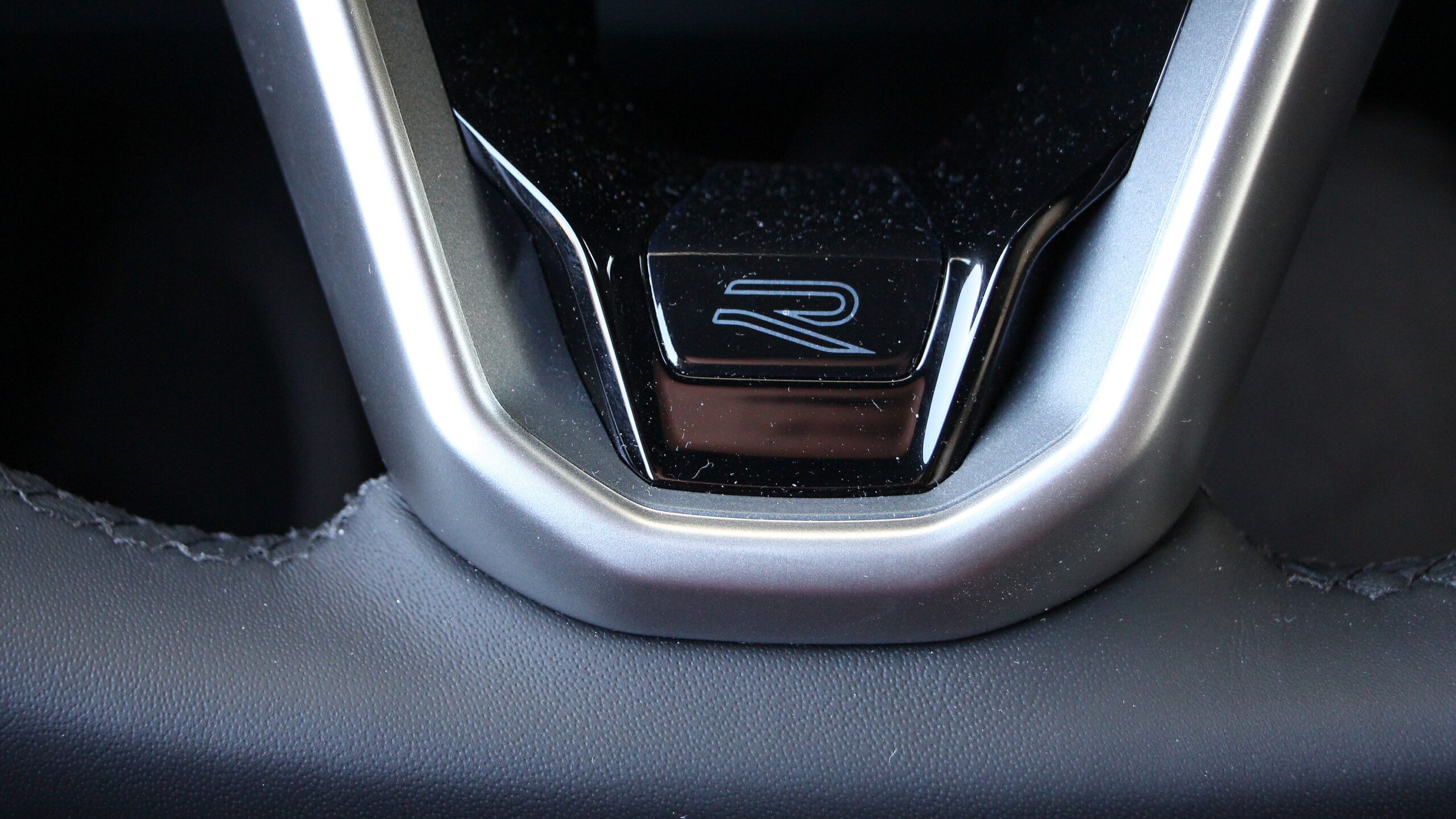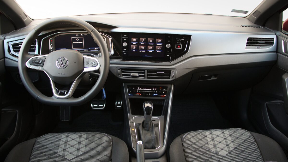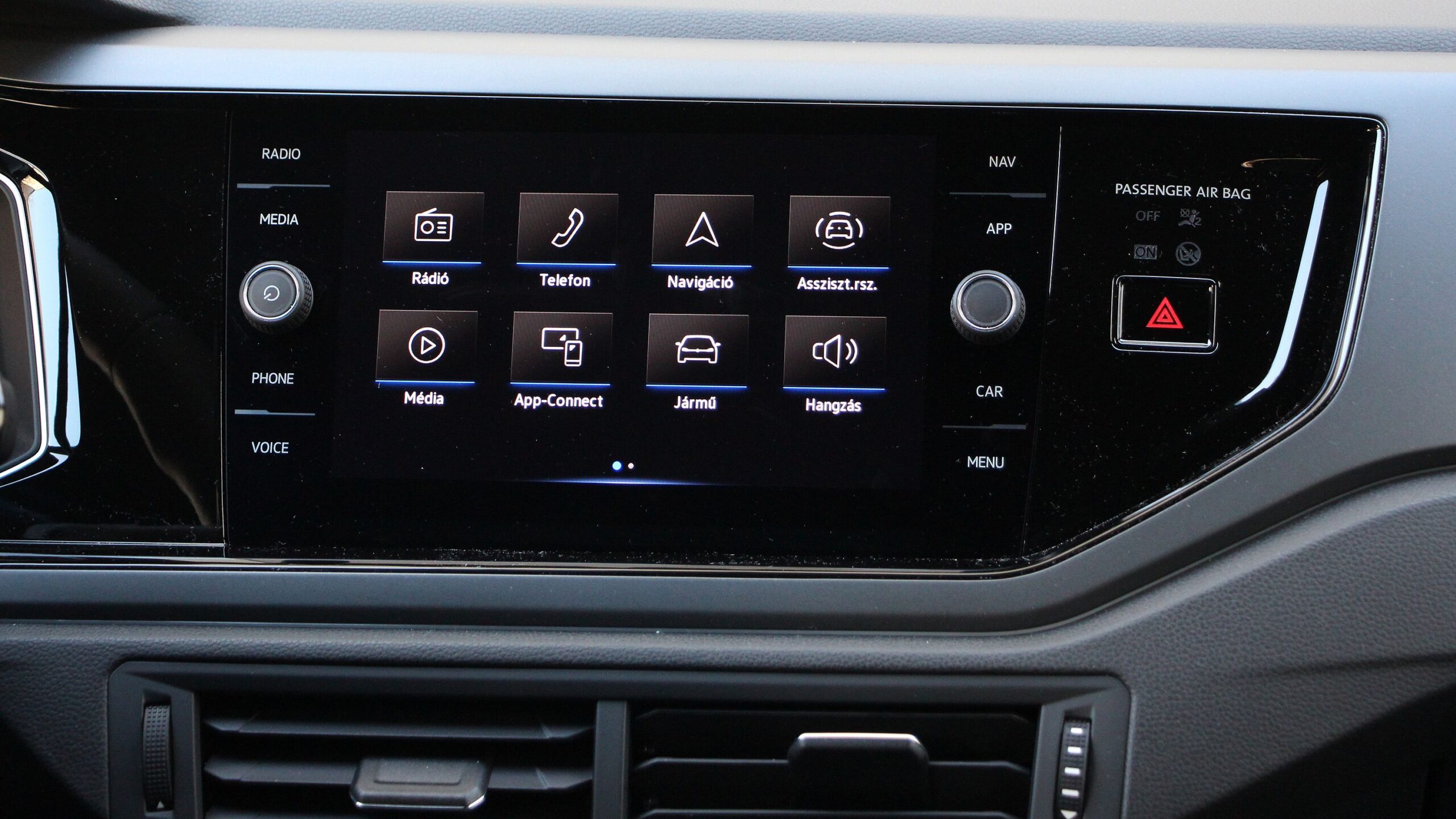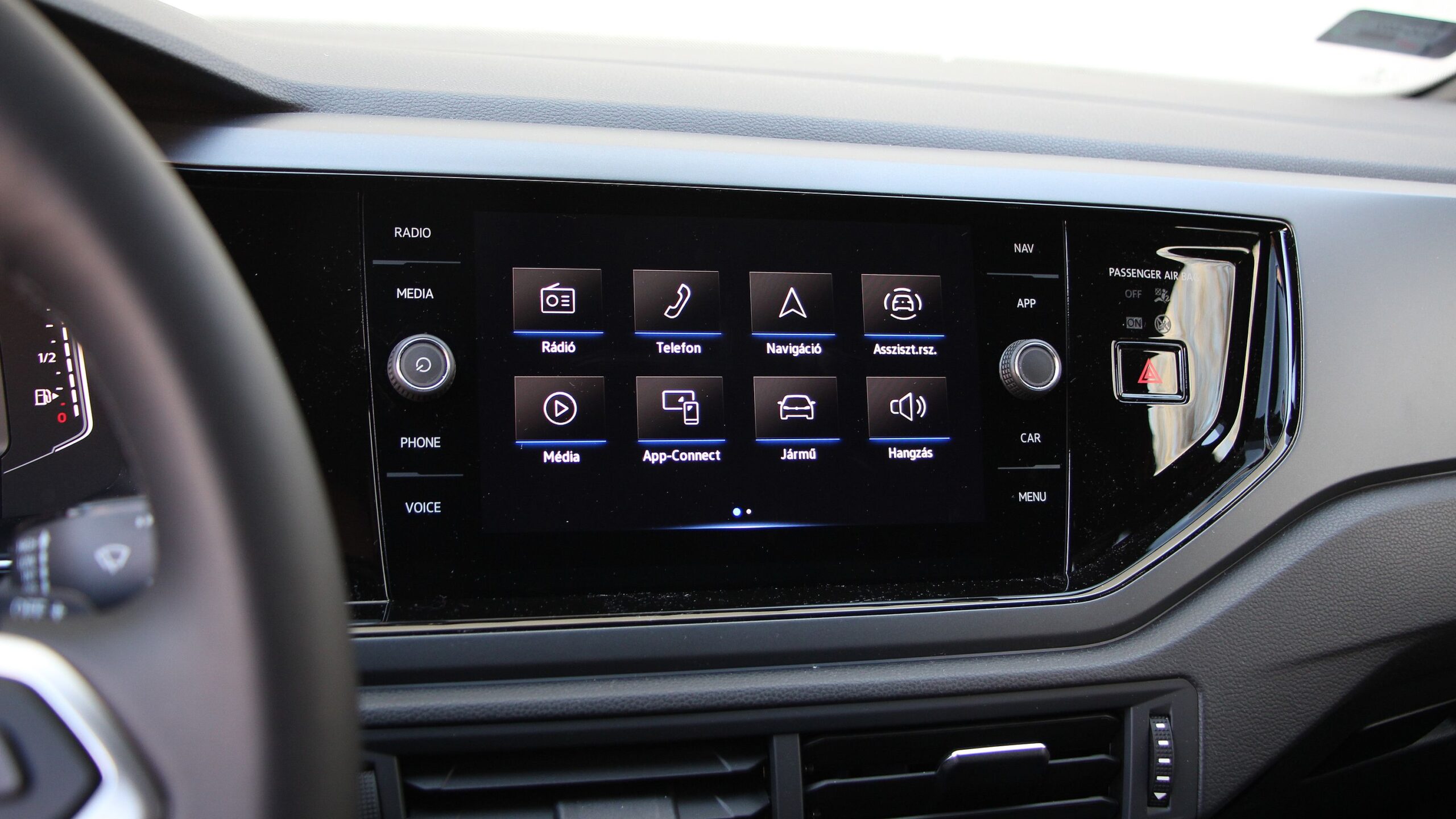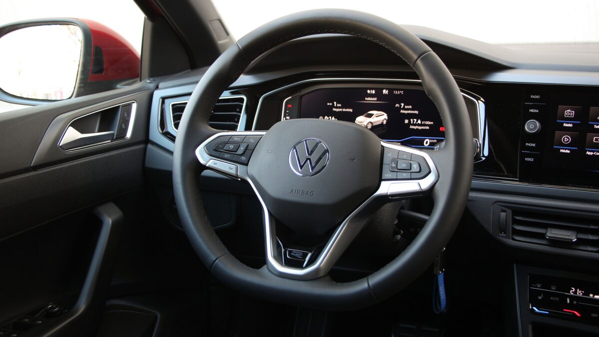 Belül a volkswagenes józanság vár, digitalizációval vegyítve. Persze a sportosság jegyében ott vannak a fémdíszes pedálok, az R-embléma a multifunkciós kormánykeréken, de ennyi. Na jó, a mintás üléskárpitok még oldják kicsit a szürke hangulatot, de azért nem túl ingergazdag az egész. Ugyanakkor ezt valójában nem bánja az ember. Minden annyira egyértelmű, könnyen kezelhető, hogy ettől maximális komfortban érzi magát a vezető, kényelmes elégedettséggel nyugtázza tehát, az egyszerű formai megoldásokat, illetve azt, hogy keverednek a nagyon olcsó hatású műanyagok a kellemes tapintásúakkal.