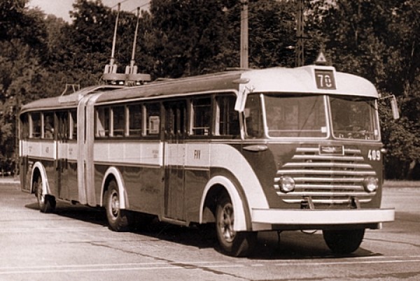 Jobbra a kuriózum a négytengelyes trolibusz, amely egyetlen példányban készült