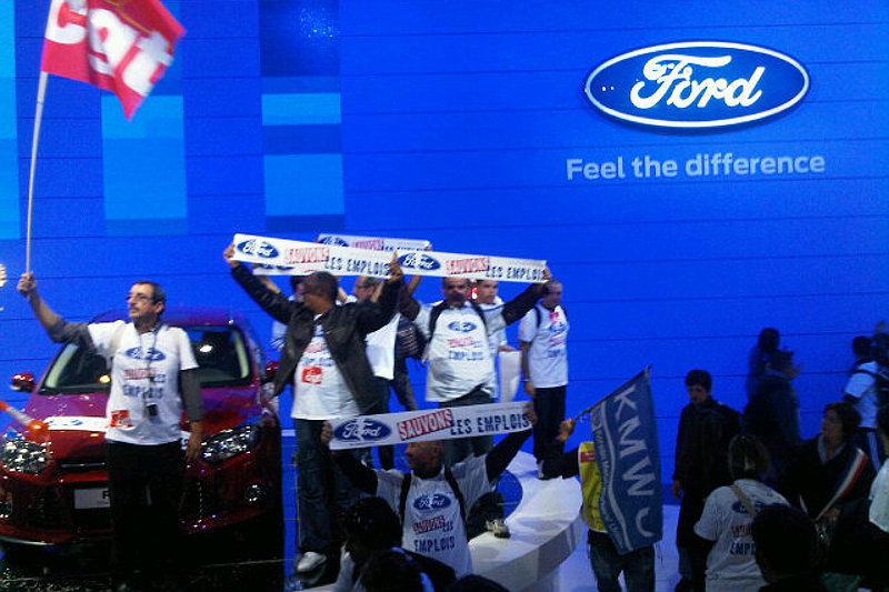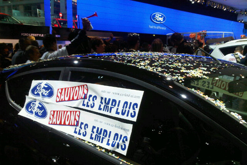 Mentsük meg az alkalmazottakat. Ezt követelték azok a tüntetők, akik szombaton szállták meg a Ford standját a Párizsi Autószalonon. Lehet, azért volt olyan népszerű a tiltakozás a munkavállalók között, mert a szakszervezet fizette a belépődíjat az autószalonra, az azonban biztos, hogy egy napot késtek. Csak az első közönségnapon, azaz szombaton hajtották végre az akciójukat a tiltakozók, amikor a világ autós sajtójának képviselői már mind hazautaztak. Az alig pár perces megmozdulás során alaposan helybenhagyták a kiállított Ford autókat, matricákat ragasztottak az ablakokra, konfettival borították el azokat, még a Ford Fiesta WRC se menekülhetett. Kérdéses azonban az akció sikere. A közönségnapok arról szólnak, hogy a látogatók megnézik az új autókat, majd ha megtetszik nekik a látvány, esetleg vesznek is egyet. A tiltakozás miatt azonban sokan nem tudták megnézni az autókat, helyette a "Mentsük meg az alkalmazottakat" felirattal szembesültek. De hogyan mentsenek meg valakit, akikről azt sem tudják, milyen autókat gyártanak?