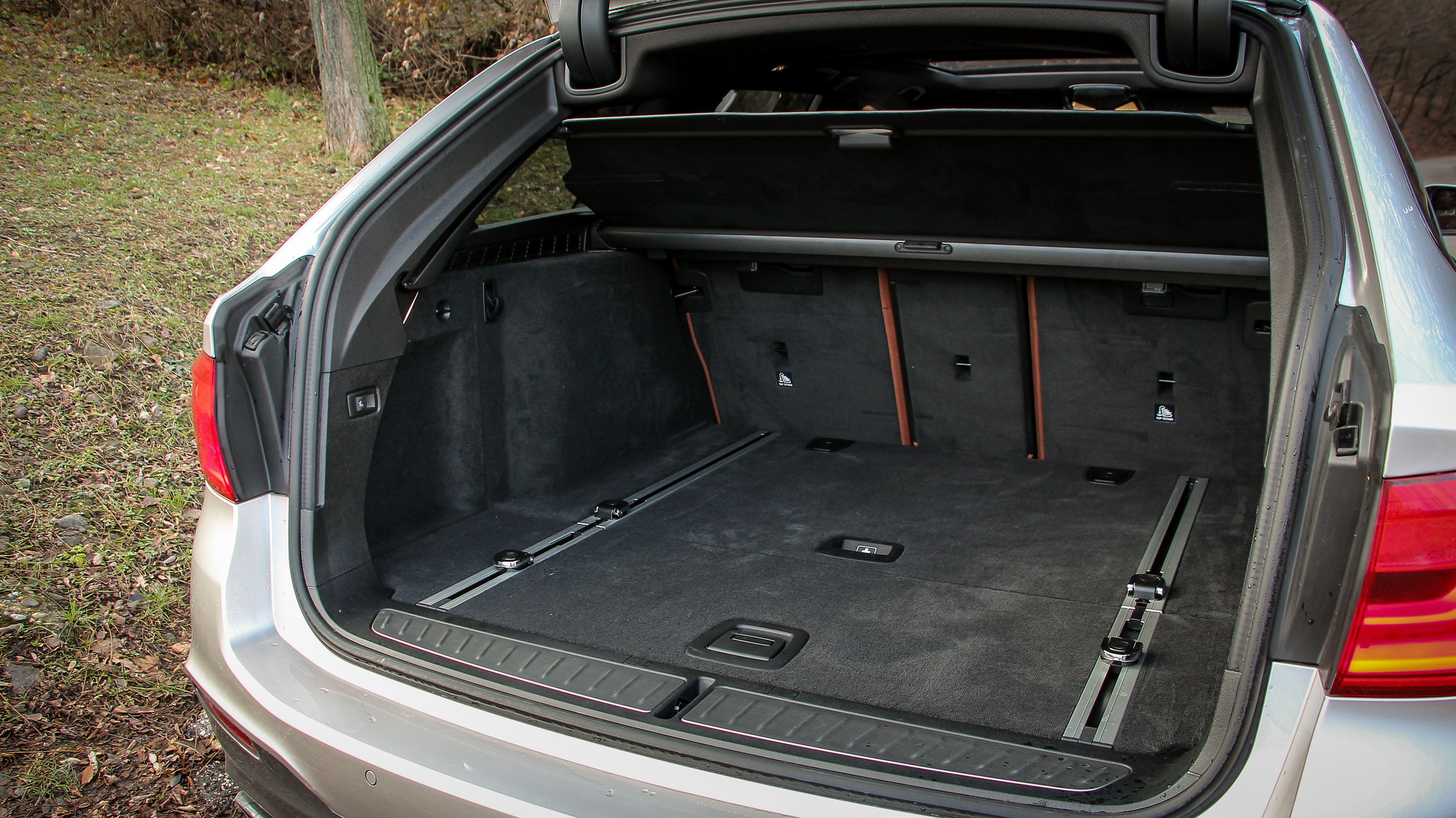 Külsőre egészen más az M Performance 5-ös, mint többi társa, ugyanis a legtöbb kiegészítő elemet matt fényű Cerium Grey színben kapja. Az M-es lökhárítóban elöl találunk ilyen kiegészítőt, hátul kicsit sötétebb szürkében láthatjuk a diffúzor imitációt. A tesztautó lényeges pontja természetesen a csomagtér is, melyet a külön nyitható hátsó ablakon keresztül is elérhetünk, a teljes ajtó pedig motorosan nyitható. 570 liter az alap raktér, persze padló alatti rekeszekkel együtt, melyet teleszkóposan kiemelkedő fedél alatt érhetünk el. Az ülések ledöntésével 1700 literes rakteret kapunk többféle rögzítési ponttal. Az M550d xDrive prémiumérzete kiváló, a bőrkárpit tapintása hibátlan, és az összeszerelésre sem lehet panasz.