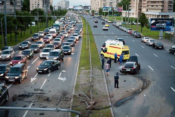 Szentpéterváron egy térfigyelő kamera rögzítette azt a balesetet, amelyben egy Porsche Panamerát amortizáltak le másodpercek alatt.