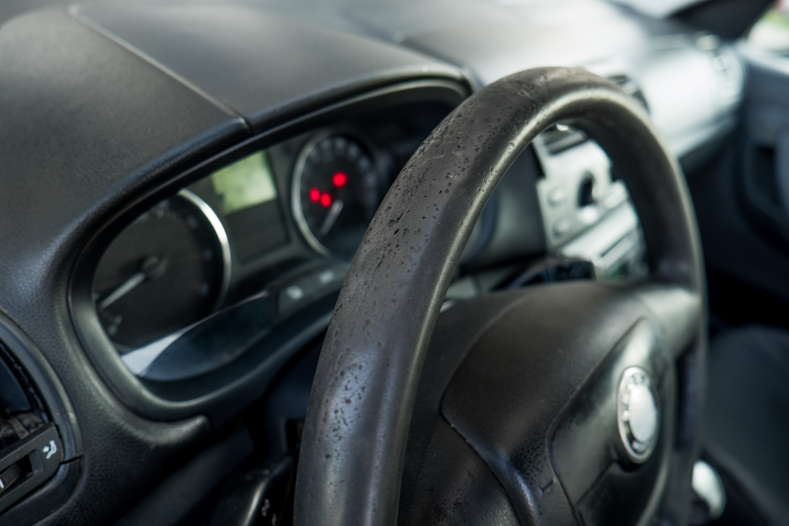 És itt nyilván nem balzsamozott tenyerű plázahercegek tekergették a volánt. Mindkét kezelőszerv teljesen elhasználódott, a kormány nem fényesre kopott, hanem millimétereket vesztett a vastagságából, a váltógomb széthullott, amit ragasztószalaggal tekertek össze. Ennél a gombnál mondjuk ez már 100 ezer környékén is megtörténik. Szépen kifényesítették az állításokat a korábbi sajtóközleményben, már akkor is gyanús volt, hogy azért nem lehet csak ennyi. Nem is ér véget a lista.Hogy mi történhet egy szellőzővel, ami ezt eredményezheti, ötletünk sincs, ahogy a kormány emblémájának kopására sem. A kormány és a váltógomb egyébként siralmas állapotban van, ám ezeket több milliószor tekerték körbe, vagy kapcsolták az 5,5 év alatt