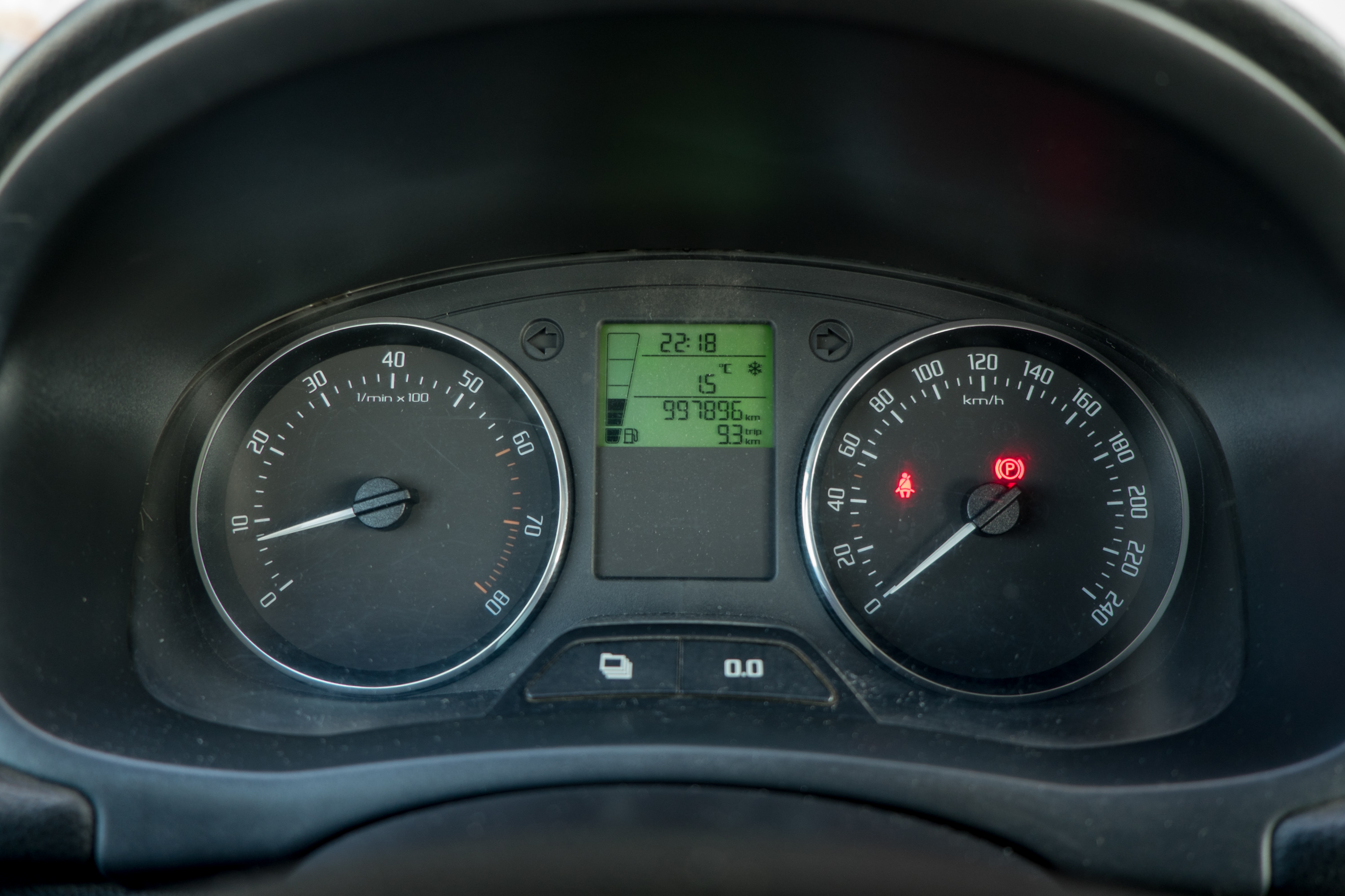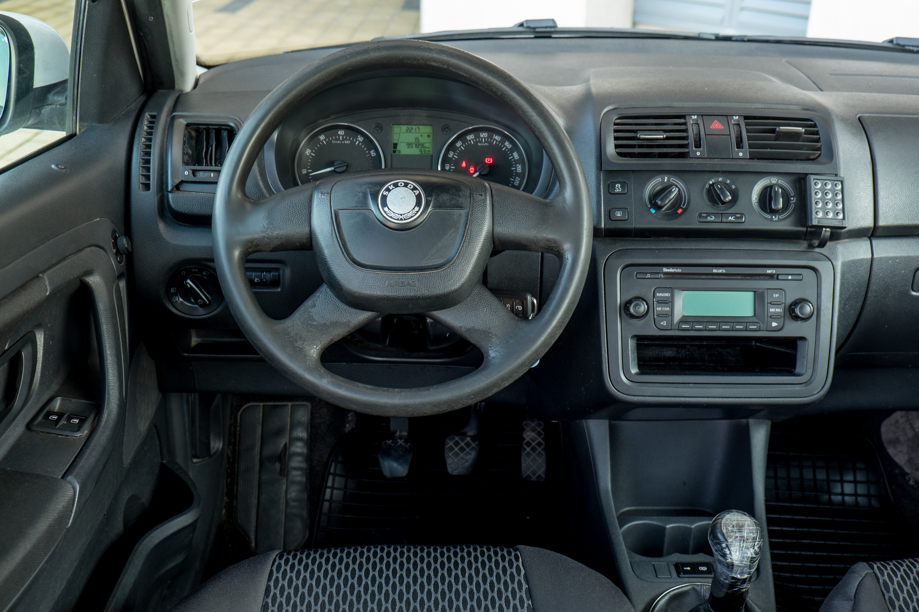 Tökéletes példája ez a Roomster annak, hogy hiába szépek a hirdetés fotói és jókat ír, vagy mondd róla az eladó, meg kell nézni közelebbről. Nem, közelről már nem néz ki jól, és valójában ezt senki nem is várta el tőle, hiszen járőrautóként szinte folyamatosan ment, nagy valószínűséggel ennyit sosem állt még egyhuzamban, mint a vonatos fotózás óta tette. Pontosan egy hónapja érkezett a híre, azóta csupán 5 kilométer került az órájába, erre egyébként eléggé vigyáznak. Még nem érte el az egymilliót, de nem is szeretnék, ha az eladás előtt megtörténne, mivel akkor kiakad a számláló 999 999-nél. Mi 997 887 kilométerrel vettük át és csupán párat tíz kilométert adtunk hozzá, de azalatt a rövid idő alatt elég sokat elárult a lelketlen igásló.