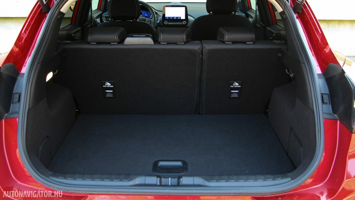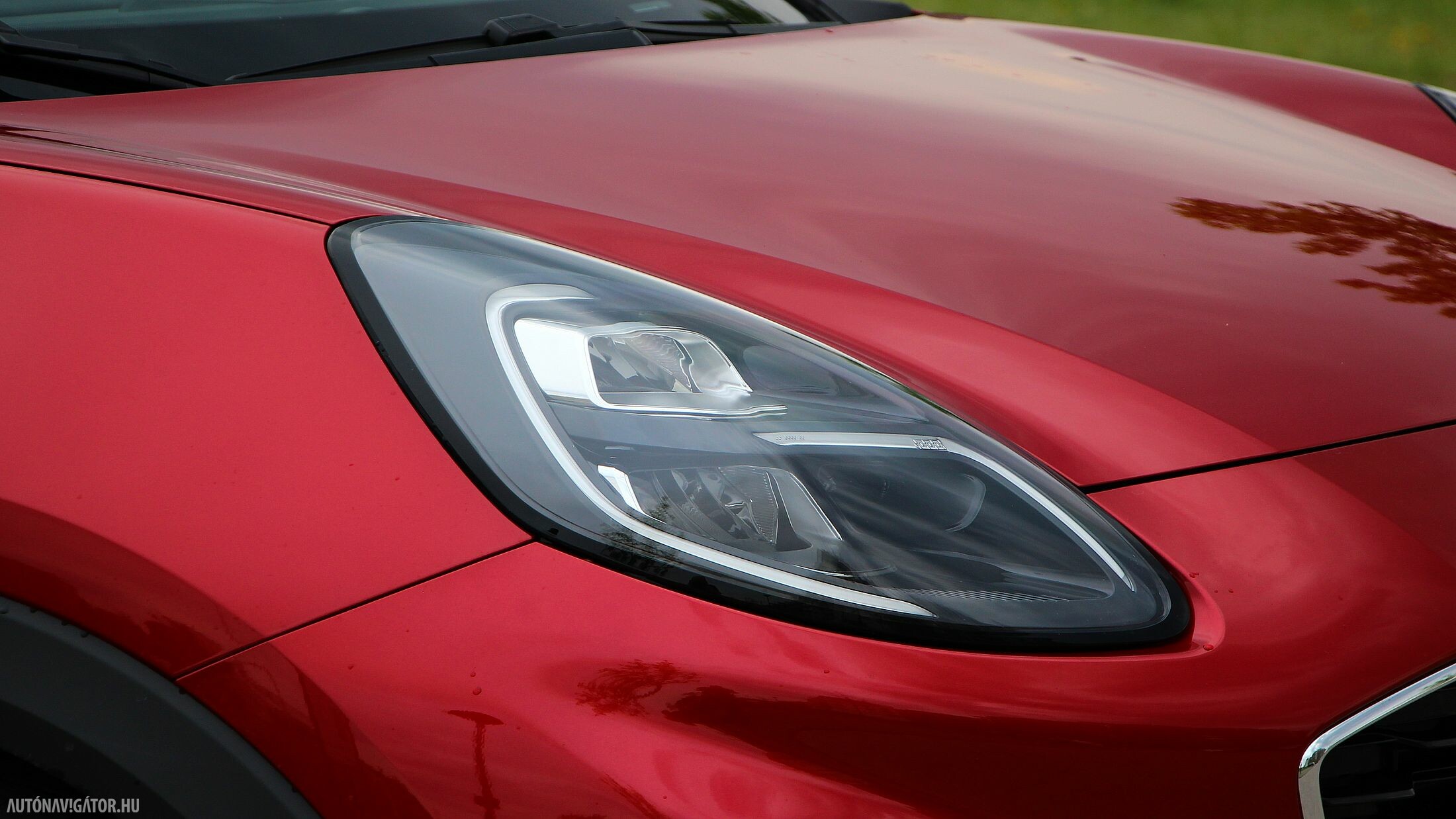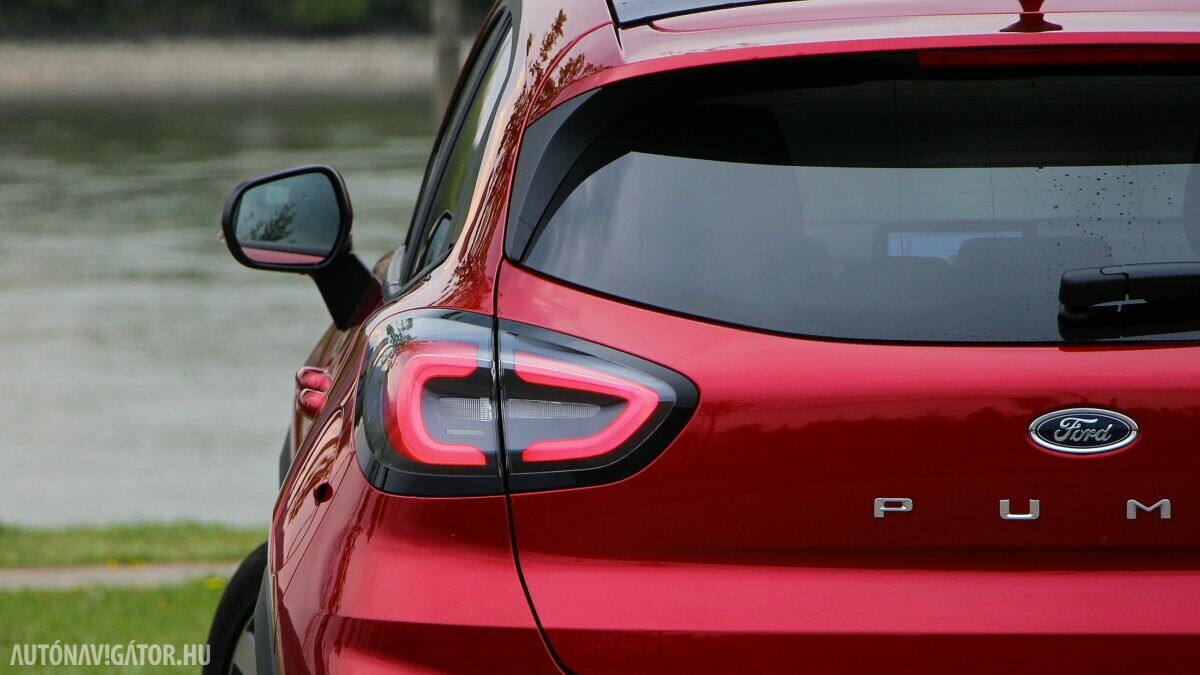 ST-Line, de azért megőrizte sportos karakterét. Mit is jelent ez? Csupán annyit, hogy a körítésnél kicsit visszafogták magukat a dizájnerek. Nincs például méhsejtmintás hűtőrács, habár messziről a Titanium magasfényű hűtőmaszkja is hasonlít az említett megoldásra. Azonban csillogó krómkeret veszi körbe, ahogy a ködfényszórók házában is megcsillan a krómos hatású díszbetét. Ugyanakkor a légbeömlő itt is valódi, és az egész autó sziluettje dinamikus. Erőteljesen domborodnak a kerékjárati ívek, meredeken lejt a tetővonal, hátul pedig szolid légterelőben ér véget. Viszont a diffúzor hatású betét helyett a terepjárókra emlékeztető, védőburkolatot mintázó díszt kapott, amelyhez hasonló jutott az első lökhárító aljára is. Mindenképp egyedi a dizájn a kategóriában, főleg így, hogy két különböző stílust is magára ölthet, ráadásul az első fényszórók LED csíkjai már távolról segítenek felismerni a Pumát.