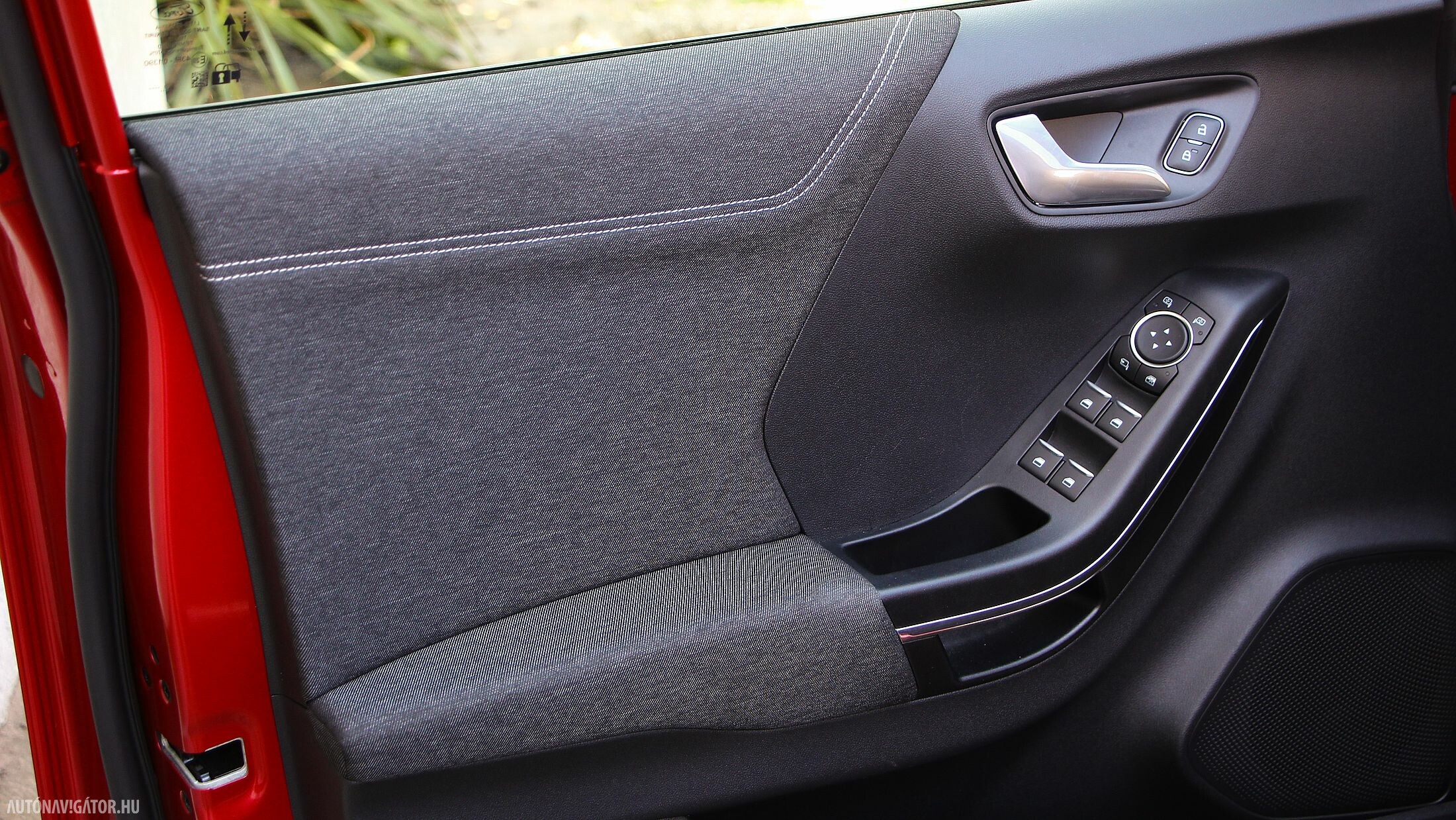 Az utastérben hasonló a helyzet. Az alul lapított sportkormány helyett, hagyományos verziót rejt a Titanium, de ez is háromküllős, multifunkciós. Karbon mintázatú díszbetétek helyett fautánzatú elemeket kapunk, amik szinte kérik, hogy kapargasd meg őket, mert tényleg annyira jól imitálják a valódi fa erezettségét. Bőr helyett igényes szövetkárpit jutott az ajtóburkolatokra (de csak elöl), valamint a fűthető és masszázsfunkcióval is ellátott ülések kárpitja is szövetből készült. Ráadásul könnyen cserélhető.