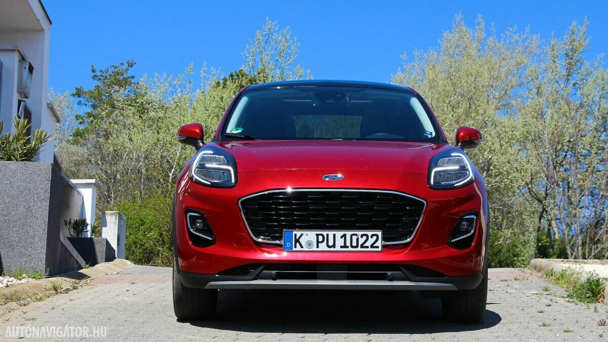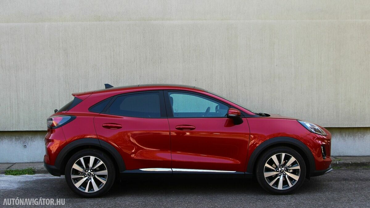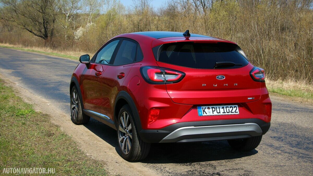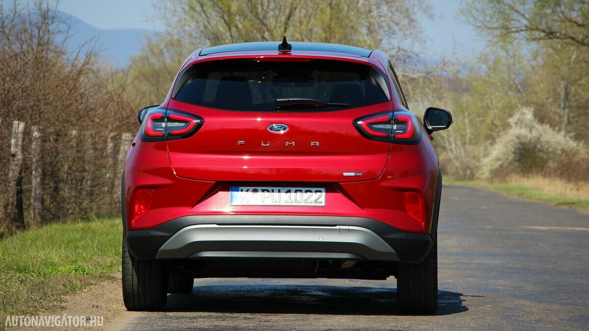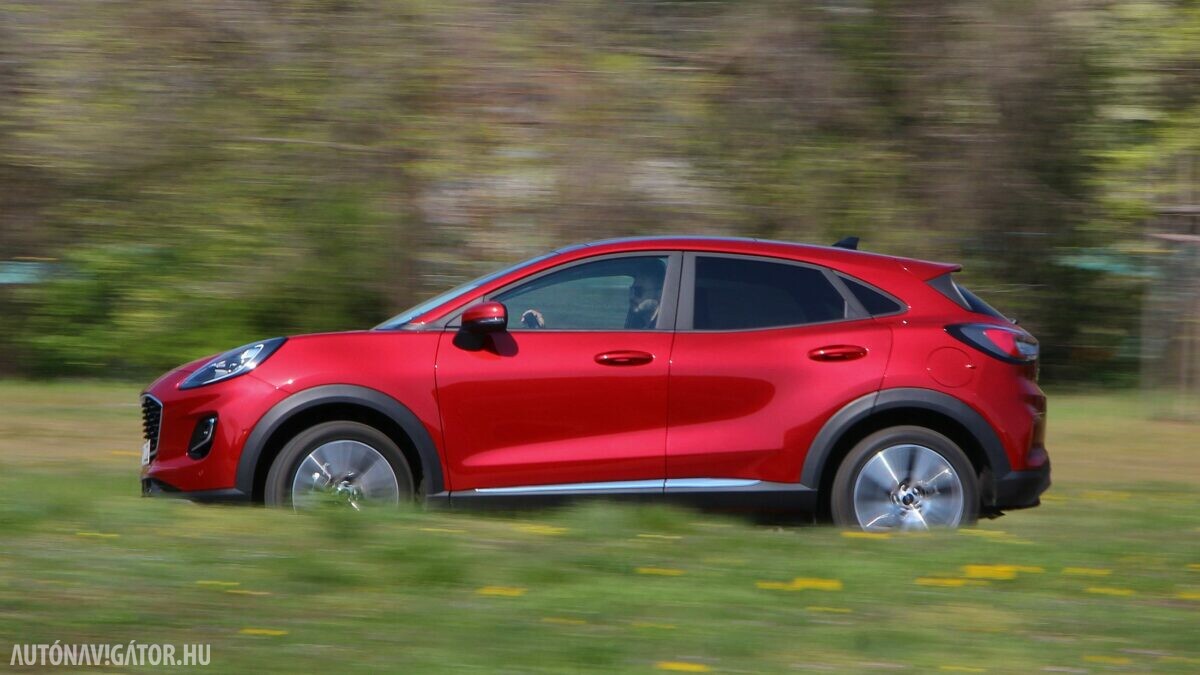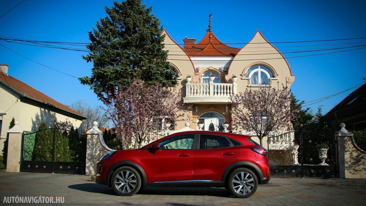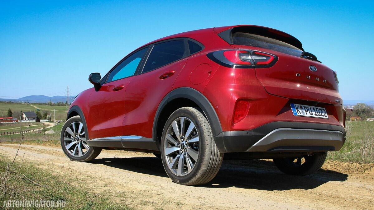 Apropó hegyek és völgyek. A Pumánál sem végzett félmunkát a Ford. A futómű, a kormány és a váltó triója zseniális. A Titanium futóműve nem annyira kemény, mint az ST-Line változaté, ám még így is sportosabb az átlagnál. Aki élvezni is akarja a vezetést, nem csak A-ból B-be eljutni, jó helyen kopogtat a Fordnál. A Puma a magas építésmódja ellenére is rendkívül stabil a tempós kanyarokban. Meghazudtolja szabadidő-autó mivoltát. A kormány közvetlen, mindent elmond az útról, persze a nagy felnik és a kemény rugók nem szeretik az egyenetlen útfelületet, ám, ahogy említettem, a Titanium nem annyira kihegyezett ezen a téren, mint az ST-Line, szóval kitűnő kompromisszumnak tűnik. Az egyetlen, ami kicsit zavart, az a háromhengeres motor hangja. Ha nem erőltetjük, akkor is hangos, amikor Sport módban kihúzatjuk akkor persze még jobban felerősödik, de nem azzal az igazán csábító sportos orgánummal.