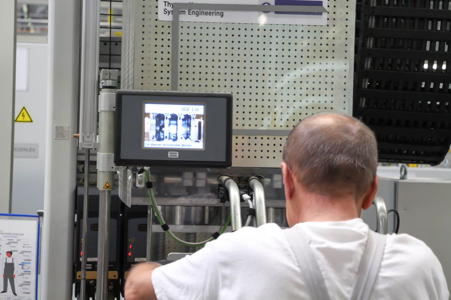 Az alkatrészek egy része kézzel kerül a helyére, a gép a legtöbb ponton csak ellenőriz, de van olyan munka, amit a gép is csinál