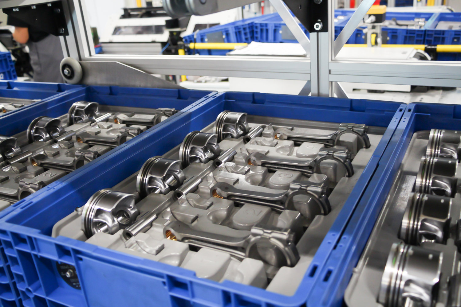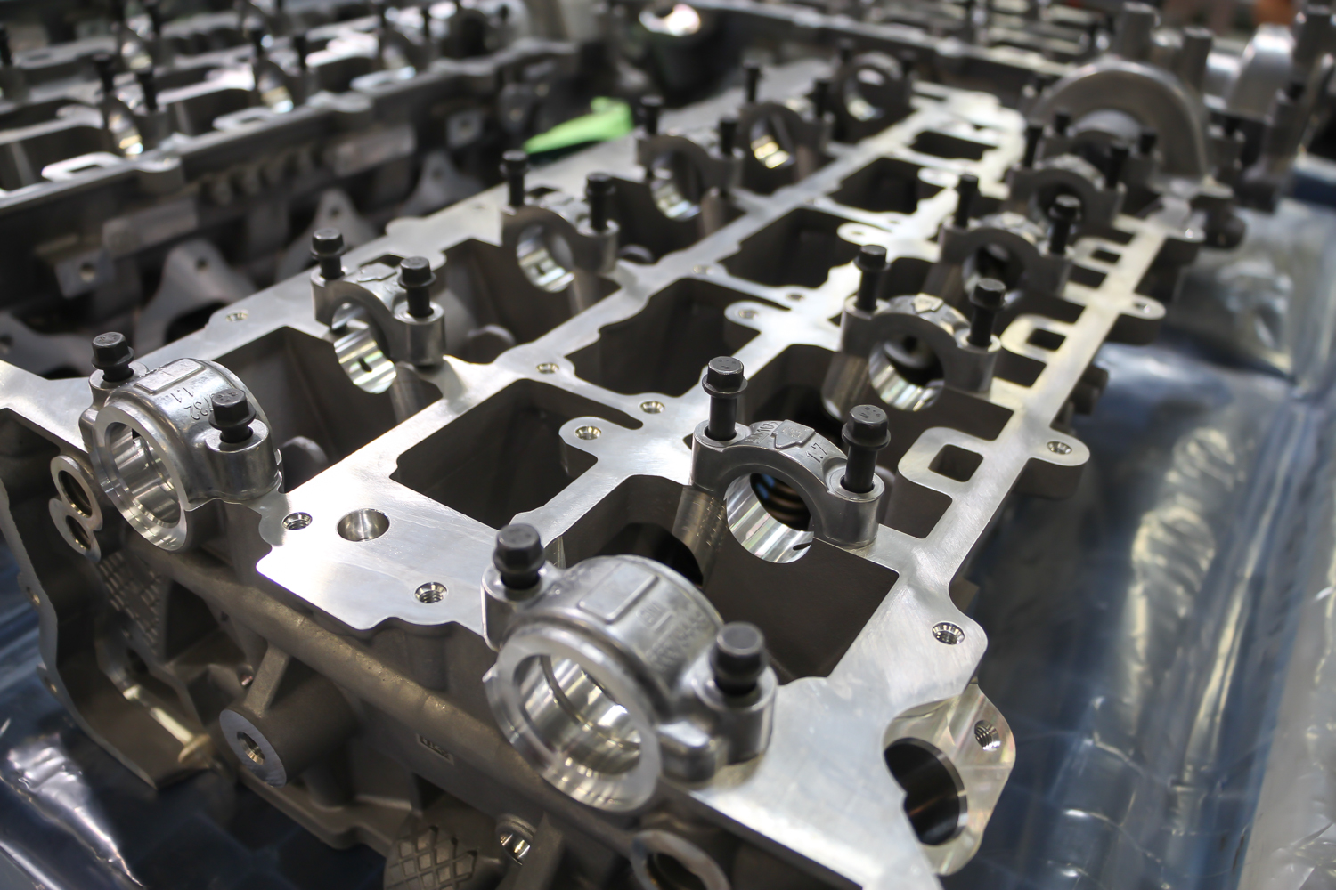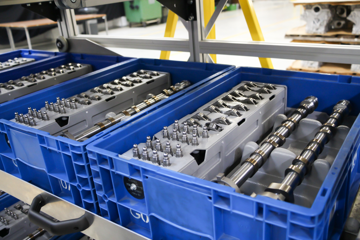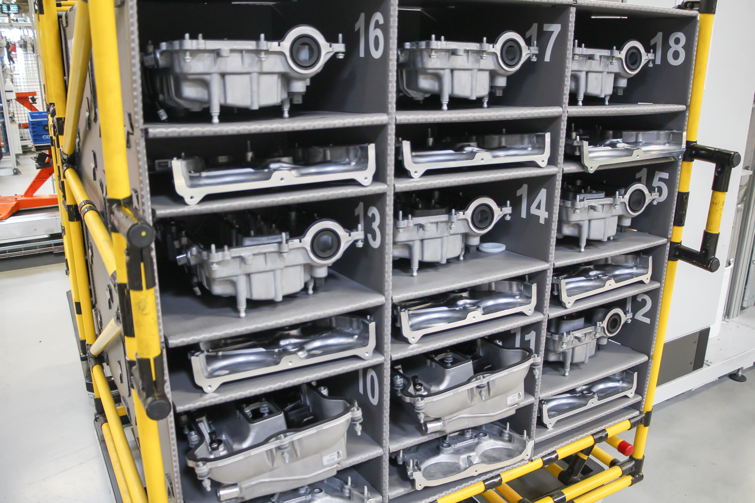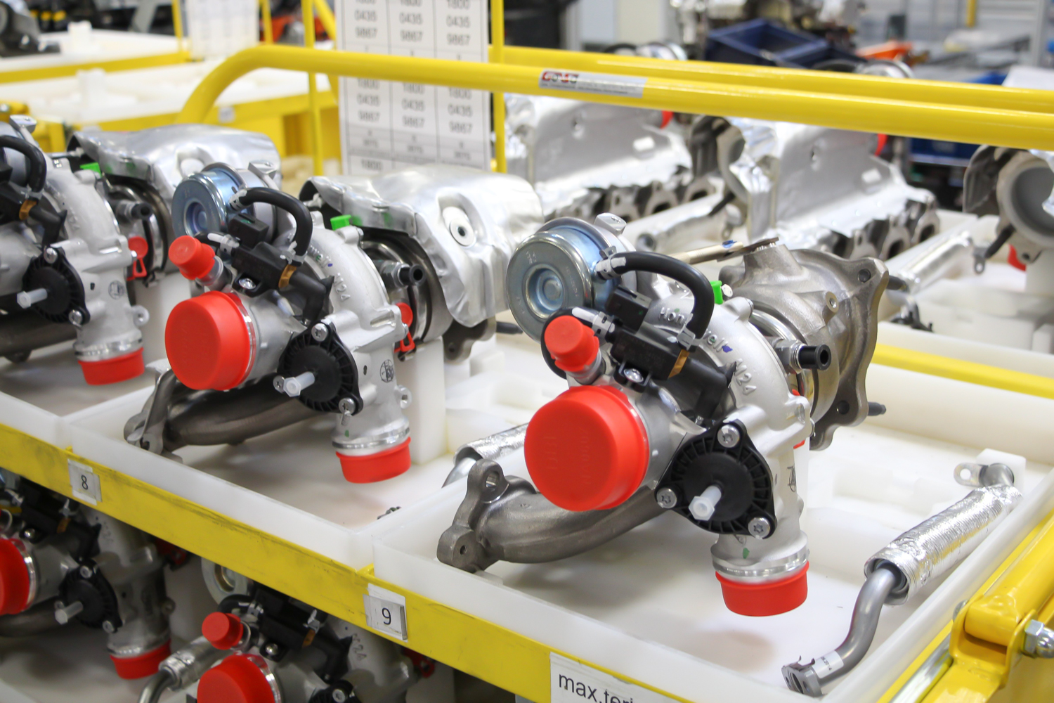 Beszállítóktól érkező alkatrészek például a komplett kipufogóleömlő a turbóval és a lendkerék is. Az alkatrészek precízen elő vannak készítve az adott motorhoz