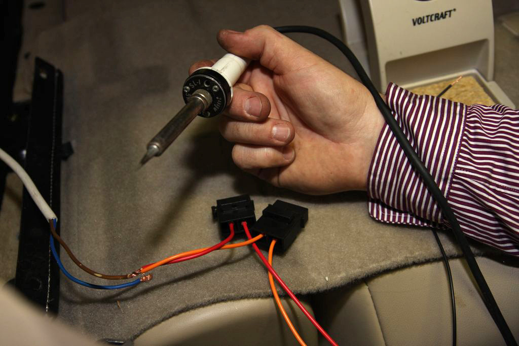 Észrevehetetlennek bizony, ugyanis a munka további jelentős lépése, az elektromos hálózatba kötés még hátra volt, az ülés hajlatánál kivezetett tápkábelhez multiméterrel lehetett volna tápot keresni, de egyszerűbbnek bizonyult egy szivargyújtó-csatalakozóból, illetve annak vezetékéből áramot nyerni. Az oda vezető kábel ugyanis biztosan elegendően erős ahhoz, hogy elbírja az erősebb fokozatában 90 W teljesítményű ülésfűtést. Mivel mi a hátsó üléshez telepítettük a fűtést, ésszerű volt a csomagtéri dugaljból áramot venni, amihez azonban a raktér oldalsó és alsó kárpitját is meg kellett bontani, továbbá egy hosszabbító kábelt is be kellett vetni. A kötésekhez forrasztásra is szükség volt, így a művelet ezen része valóban túlmutatott a hétvégi bütykölésen. Elöl a fűtés reléit az ülés alatt kiválóan lehetett volna rögzíteni, itt azonban a csomagtér padlója alá kellett azokat rejteni - szintén a már jól ismert gyorskötözővel rögzítve, azaz zörgésmentessé téve.