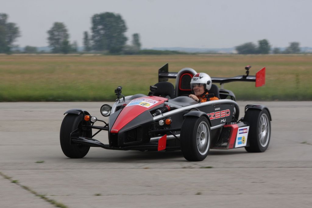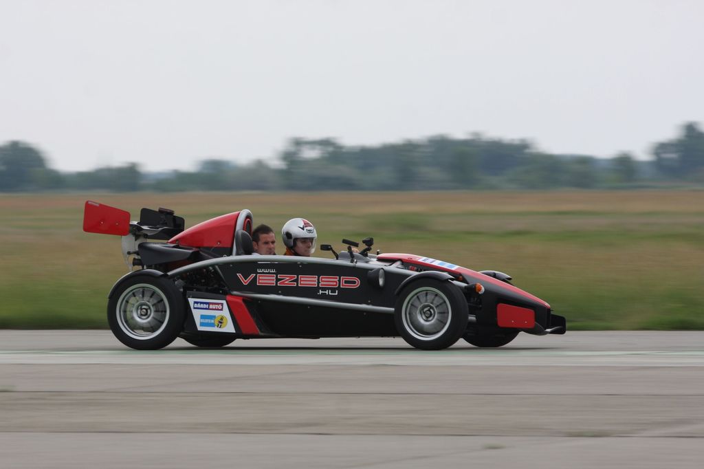 A két említett autó közül kétségtelenül az Ariel Atom az ismertebb, arról - egy hasonló próba után - már írtunk is, de azért néhány szóban most is megemlékezünk róla: az Angliában manufakturális keretek között gyártott, azaz inkább épített apró, de kétüléses, iszonyatosan lapos versenyautó farmotoros és hátsókerékhajtású. Motorja a Honda Civic Type R-ből való 2,0 literes, ám kompresszorral töltött. A nem egész 500 kilogrammos Atom teljesítménye három fokozatban állítható, s ez jól is jön a három szakaszra bontott 15 perces próbához. Először csak 100 lóerővel gazdálkodhat a sofőr, így 150 km/órás tempót érhet el a 800 méter hosszú kifutón. A második fokozatban már 200 lóerőt kap, s így tömeg/teljesítmény aránya már jobb, mint egy Ferrari F430-é, a csúcssebesség pedig 190 km/óra lehet. A harmadik fokozatban már a teljes, 300 lóerős teljesítmény elérhető. Ilyenkor 1,56 kg/LE arányával az Atom az 580 lóerős Lamborghini Murciélagót is lepipálja, végsebessége a kifutón 220 km/óra lehet, azaz a legtöbb sofőr meg tudja futni vele a 200 km/órás tempót. [BANNER type="1"]