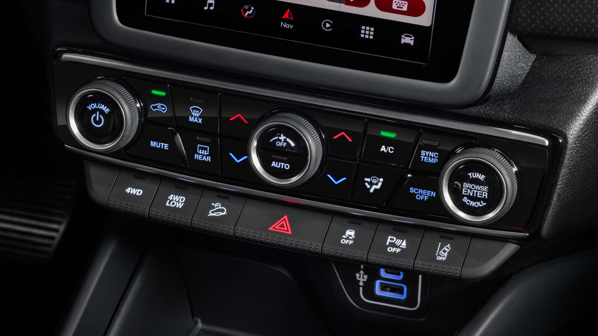 Az utastérbe jókora kijelzők kerültek, de a főbb funkciók fizikai gombokkal is elérhetőek, mint például a légkondi