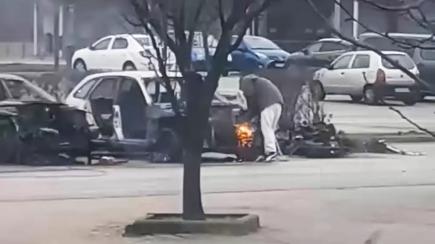Videón a rögtönzött autóbontó: állítólag a saját járműveiket darabolták fel a hipermarket előtt