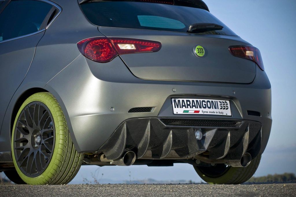 Az olasz Marangoni legfrissebb gumiabroncsa, az Mpower i-Green nem csupán teljesítményével, hanem futurisztikus neonzöld színével is a tuning-fanatikusoknak szól. A bemutató kedvéért az Alfa Romeo Giulietta legkeményebb, 1750 TBi Quadrifoglio Verde változatából építettek egy egyedi példányt. Az ötajtóson nem csupán a színes, 235/35 R19 méretű abroncsok a különlegességek. Fényezése matt szürke, az első lökhárító légbeömlőivel, a hátsó karbonszálas műanyag diffúzorával hajaz a Ferrari F 430-éra - az elnevezésbe ezért került az azonos számkód. A tuning nem csak optikai, az 1,75 literes, közvetlen befecskendezéses turbós benzinmotor teljesítményét a szériaverzió 235 lóerejéről 286 lóerőre izmosították, egyebek mellett a rozsdamentes, Ragazzon sportkipufogó-rendszer beépítésével. A futómű erőteljes, 4 centiméteres ültetést és természetesen keményített rugókat kapott, az izmos, Tarox B360 fékrendszert az első lökhárítóból vezetett légcsatornák hűtik. A beltér kárpitozása az abroncsokénál kevéssel visszafogottabb, sárgás Alcantarát fekete bőrrel vegyíti. A G430 iMoove Marangoni igazi demóautó, csomagterébe egy Segway i2, giroszkópos önjárót is tettek.