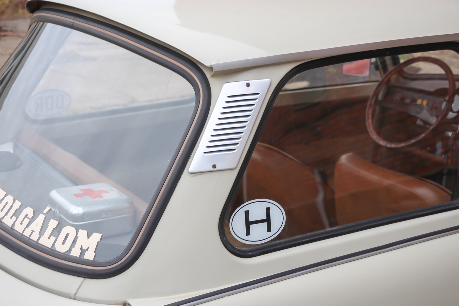 Ez a kedvesen patinás, de eredeti állapotban megőrzött limuzin is ahogy kell, egy idős bácsinál kezdte a pályafutását. A bácsi és a néni vele jártak a piacra, a telekre, hétvégén meg rendszeresen le is mosták a ház előtti parkolóban. Zsolt olyan autót keresett, amit senki nem mókolt; pár kis hiba a fényezésen nem zavarta, az autóval egyidős tartozékokat viszont nagyra értékelte. Attól sem esett kétségbe, hogy volt azért javítandó a kasztnin. Na nem a Duroplast nevű, melegen sajtolt műanyag kasztnielemke gondolok, azokkal nem volt hiba, de kellett pár folt a fém doblemezekre, az első taposók nagy része is csereérett volt. Ennyit a korabeli prospektusban említett végtelen csillaggarázsról... A legnagyobb horror a B-oszlop összeeresztésénél alakult ki, ott is elrohadt annyira a fém, hogy kellett némi lemezszobrászat. Nem a szépségdíj volt a cél, a tulaj otthon csinálta maga, de benne van az anyag, hogy a következő tíz évre biztosan jó legyen.