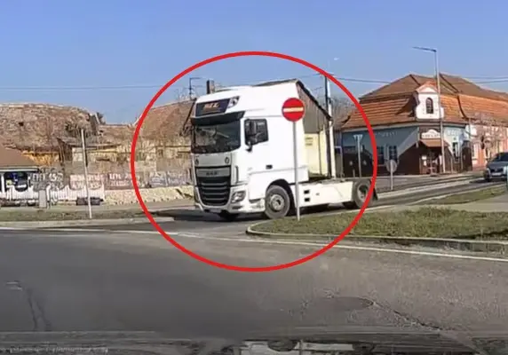 Szinte fékezés nélkül hajtott a körforgalomba a kamion sofőrje! Ez lett a meggondolatlan akció vége!