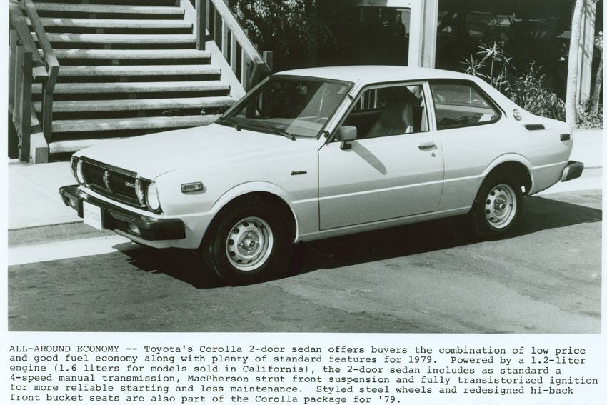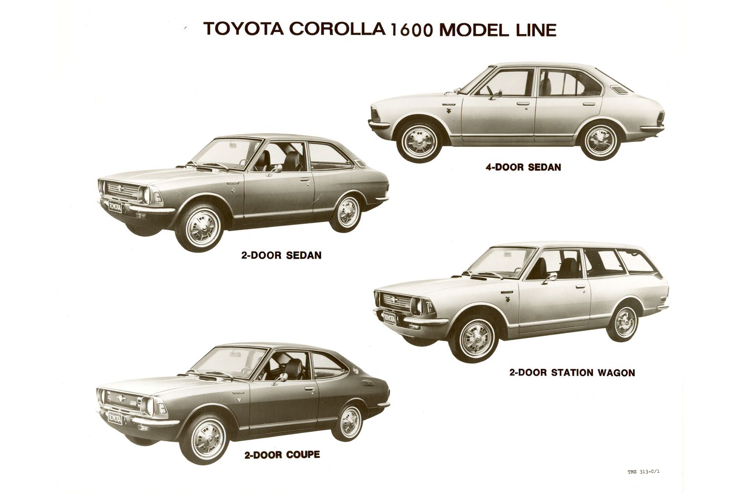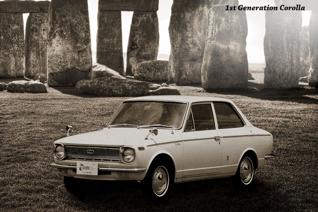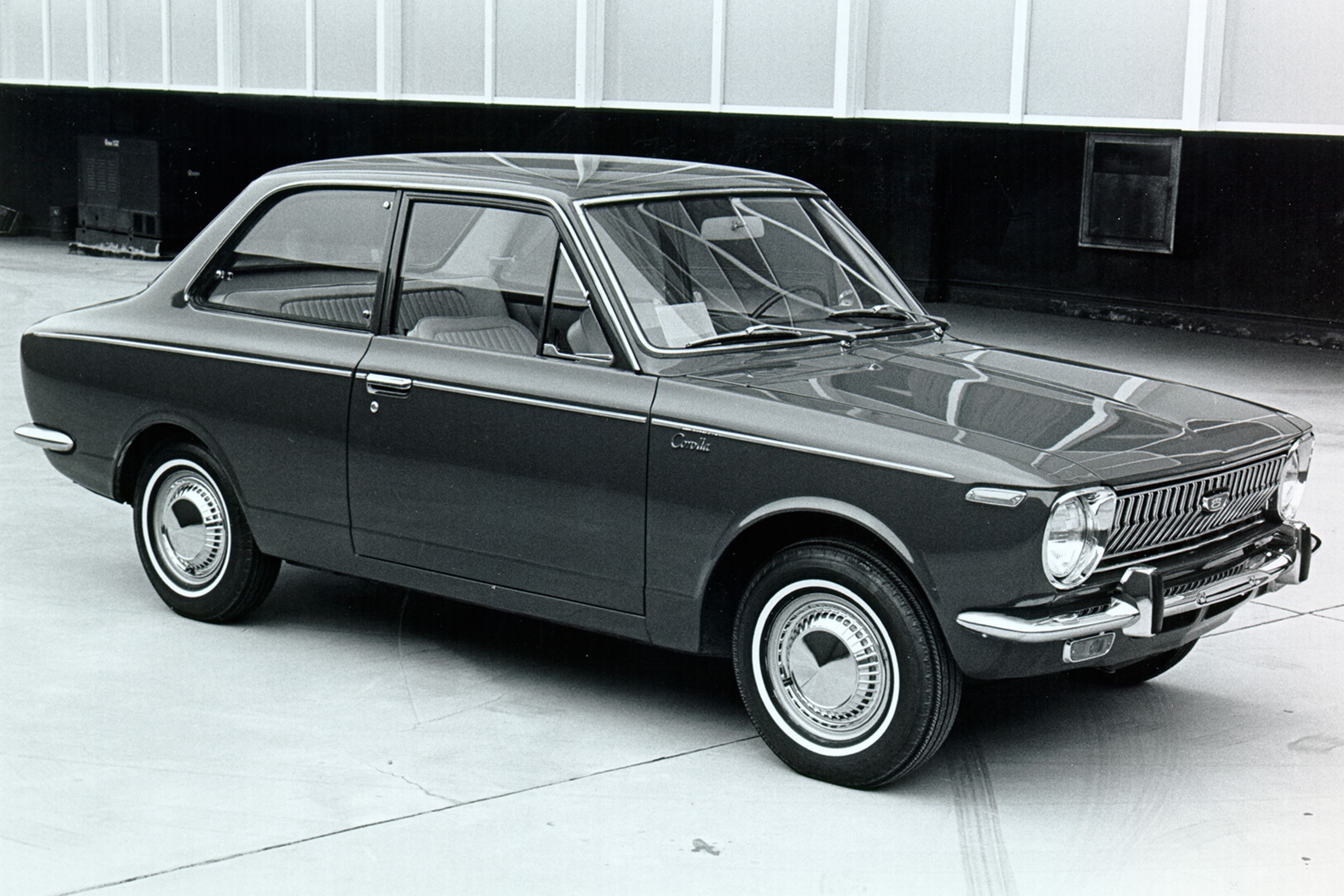 A Toyota tudatosan készült arra, hogy a Corolla kulcsfontosságú modell lesz. Számunkra hihetetlen, de a hatvanas években már „3C láz” hódított Japánban. Ez a Car, airCondition, Color TV, azaz autó, légkondi, szíves tévé szavakra utalt. Az 1964-es Tokiói Olimpia, és az annak kapcsán épült temérdek új út kapcsán hihetetlen fejlődés és mobilizáció kezdődött meg japánban, a Nissan is kihozta a Sunnyt, ráadásul a Corolla előtt. Állítólag annak 1,0 literes motorja miatt fúrták fel az utolsó pillanatban a Corolla blokkját 1,1 literesre, hogy a többletet a reklámkampányban hangsúlyozhassák. Az első Corolla 3,85 méter hosszú kétajtós szedán vagy kombi volt, alig több mint 700 kilogrammos saját tömeggel és 60 lóerővel. Azonnali siker lett, az első évben 160 ezer példány készült belőle, az indulás után 3 évvel és 8 hónappal túl volt az egymillió példányon. Ekkoriban, 1970 májusában debütált a második generáció, amiből már összesen 25 különféle verziót kínált a Toyota. A Corolla még mindig csakis kétajtós lehetett, de már limuzin, kupé és kombi karosszériával, az 1,2 literes motorjából 55-58 lóerőt kihozva. Dönthető hátsó ülés, az első ülésekbe integrált fejtámasz és csomagtérvilágítás is szerepelt már benne, elsőként ez a generáció érkezett Európába, természetesen csak annak nyugati felébe.
